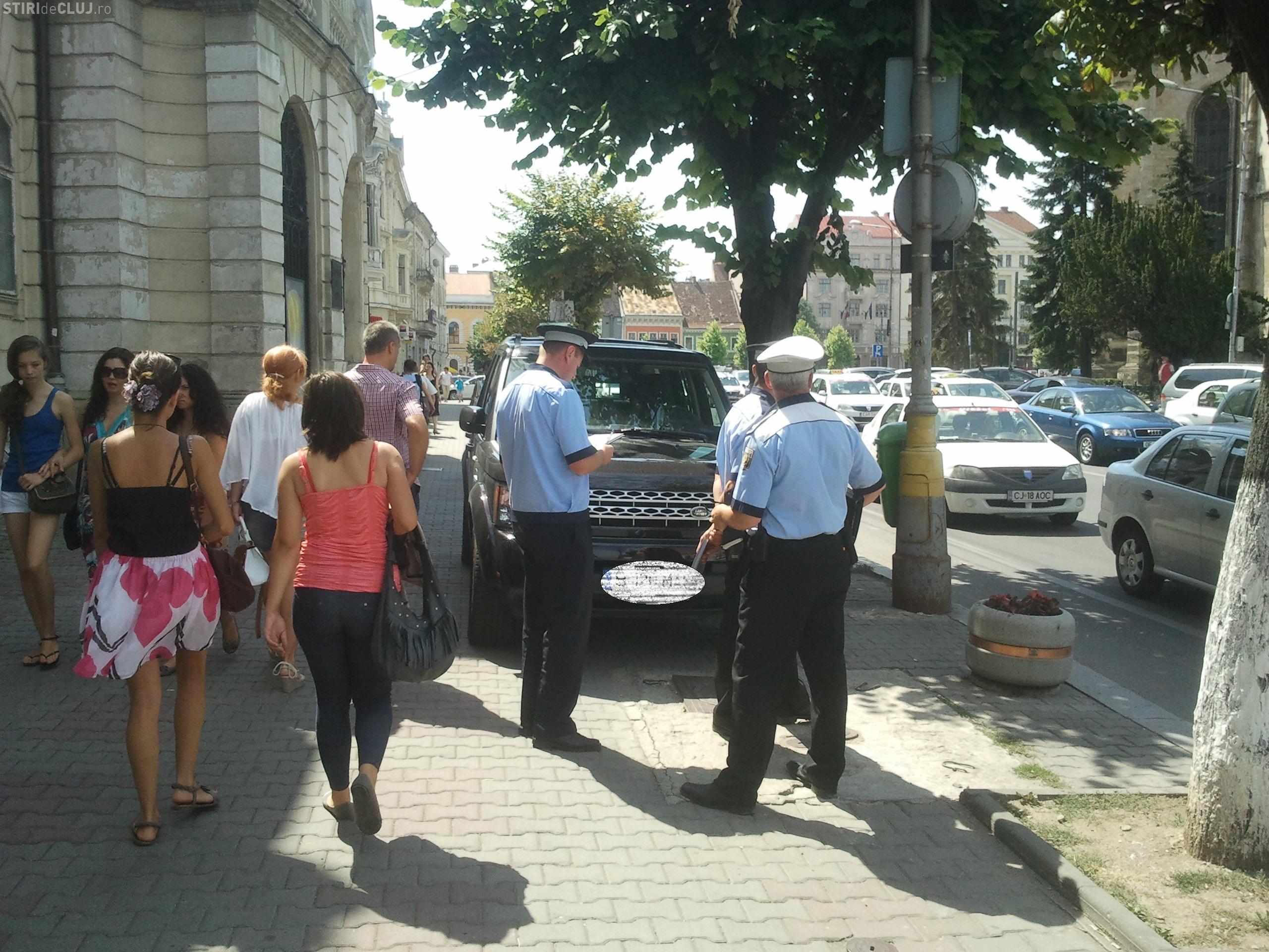 O șoferiță, care și-a parcat zile la rând Jeep -ul pe trotuar, lângă Muzeul de Artă din Piața Unirii, a fost amendată de polițiștii locali, dar era foarte revoltată de ceea ce se întâmplă.