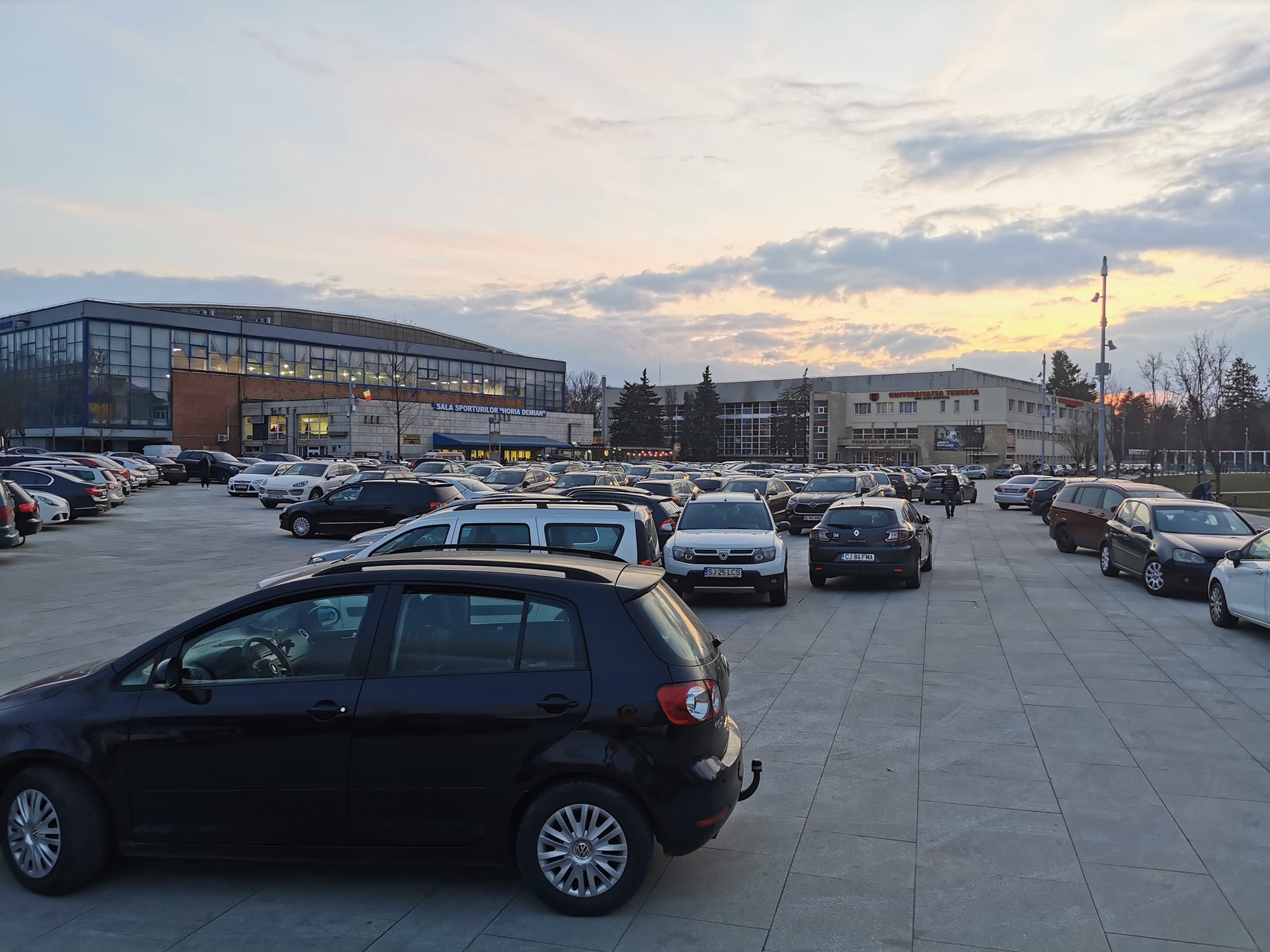 Platoul Sălii Sporturilor, plin de mașini în weekend! Boc zicea că spațiul a fost eliberat de rable pentru oameni