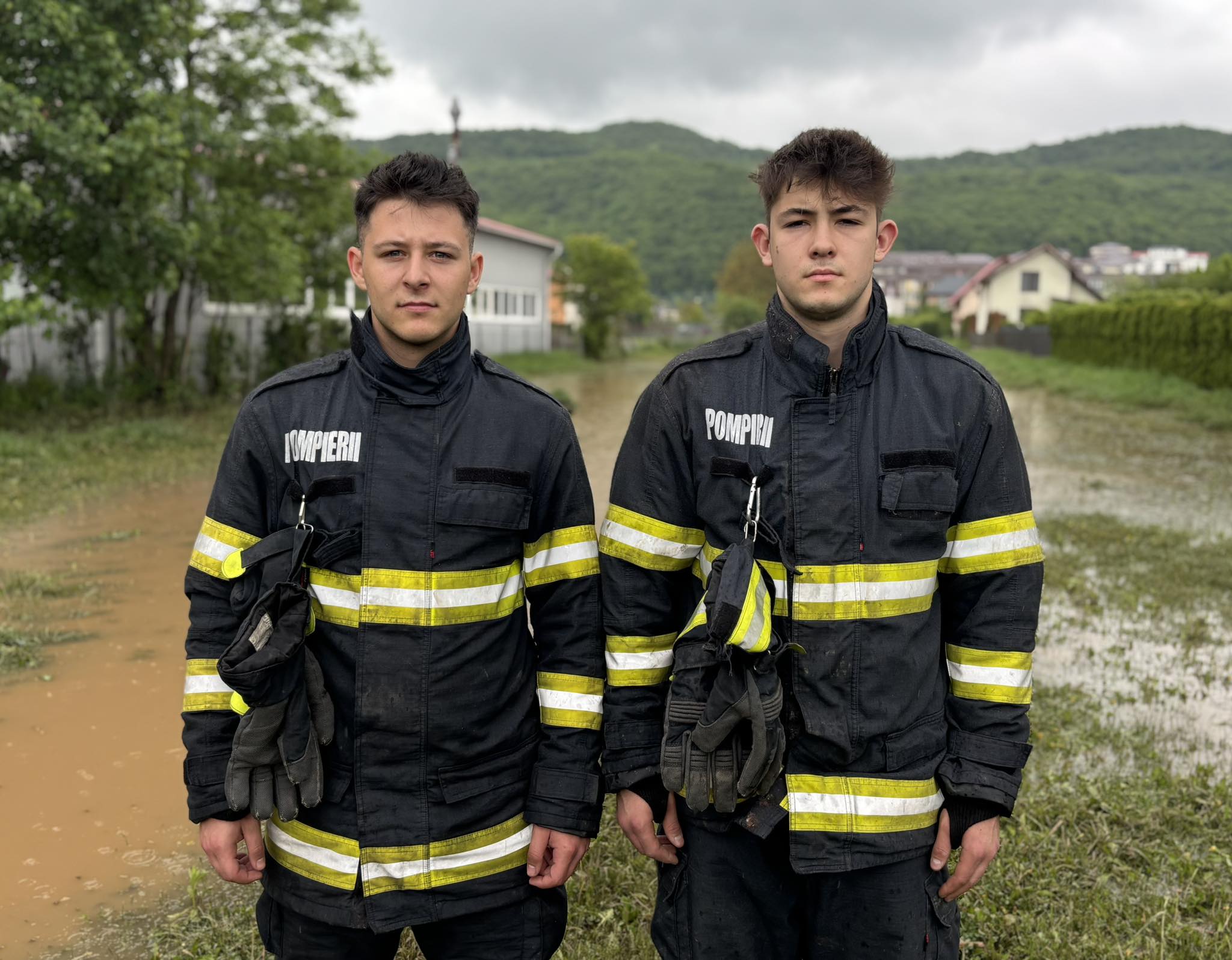 Eduard și Adrian sunt în practică de aproape o lună la ISU Cluj și iau parte la multe dintre misiuni. Luni au fost prezenți la primele solicitări venite în urma inundațiilor din Florești și au muncit cot la cot cu echipajele mai bine de 8 ore.