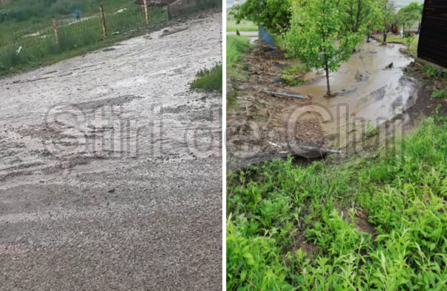 Ploaia a distrus complet un drum din Cluj. Locuitorii sunt disperați: „Drum nu, apă potabilă, nici atât! Dar plătim taxe de Cluj-Napoca!” VIDEO