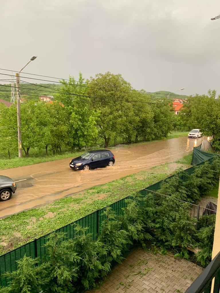 Canalele de pe strada Borhanciului au sărit și strada s-a inundat, în urma furtunii puternice de joi după-amiaza.