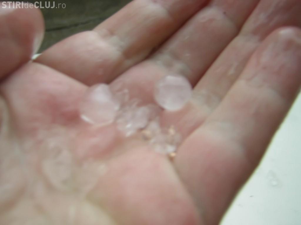 Ploaia puternica de miercuri dupa-amiaza a fost insotita de grindina. Un cititor Stiri de Cluj a surprins imagini cu bucatile de gheata mari cat un bob de fasole.