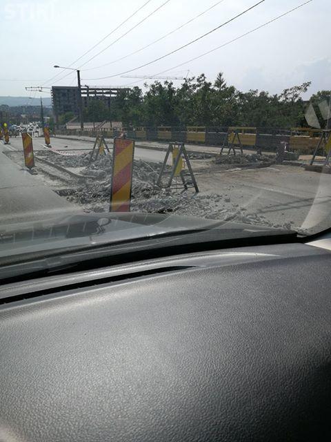 Podul de la Terapia este închis parțial pentru lucrări, dar nimeni nu ... lucrează.