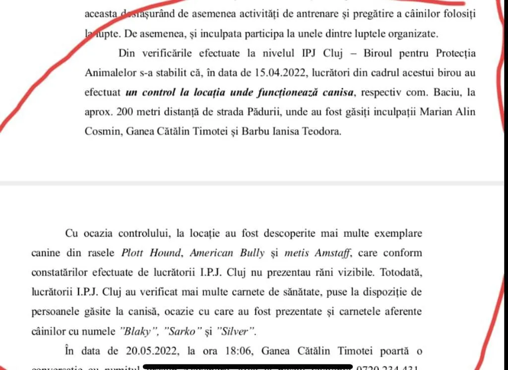 Poliția animalelor din cadrul IPJ Cluj a verificat în aprilie - mai 2022 locația de pe strada Pădurii, din comuna Baciu, unde 70 de câini erau puși să se bată regulat, dar nu au observat nimic suspect.