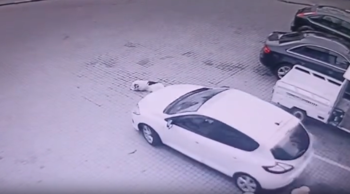 Poliția Cluj reacționează în cazul câinelui călcat de două ori cu mașina de un șofer în parcarea unui supermarket. VIDEO Camere de supraveghere