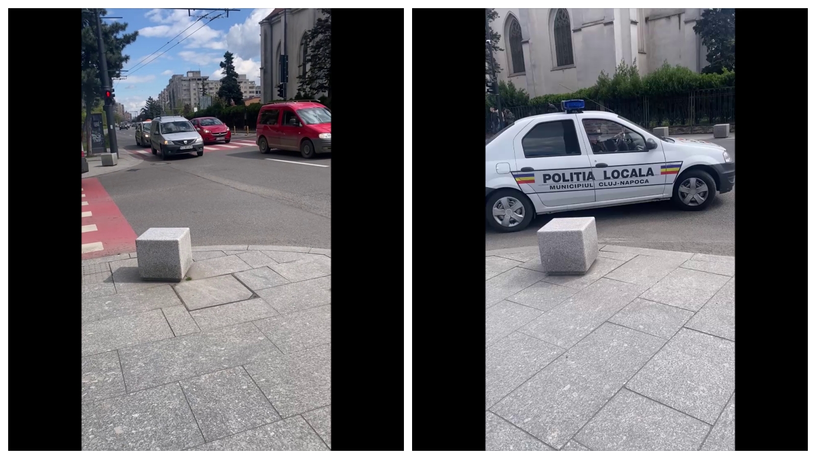 Poliția locală a trecut pe roșu în intersecția cu Bulevardul 21 Decembrie 1989, lângă biserica Sfântul Petru, din cartierul Mărăști.