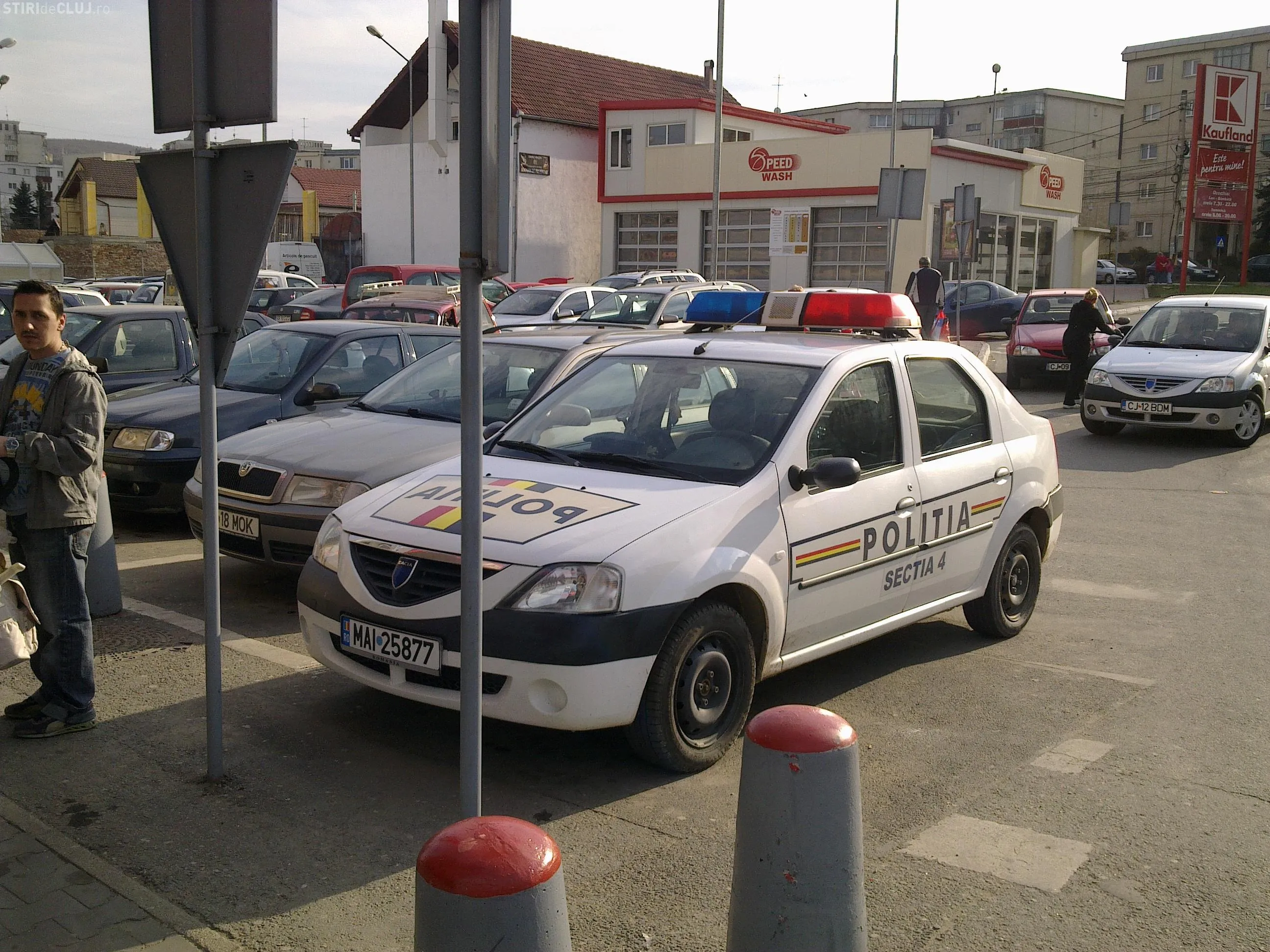 Politia parcheaza pe trecerea de pietoni la Kaufland, in Manastur FOTO