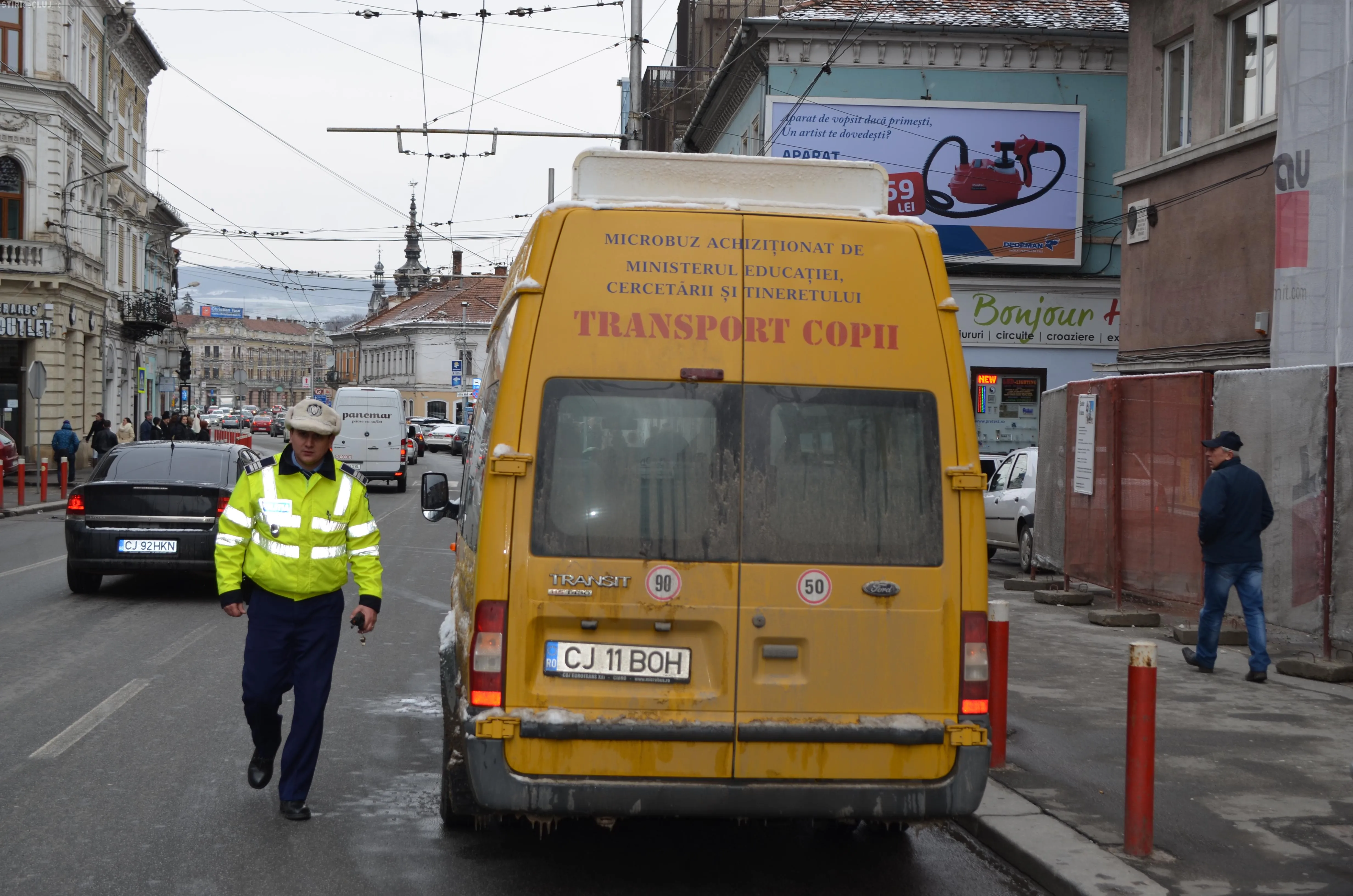 Un microbuz școlar dintr-o comună de lângă Cluj-Napoca era parcat mai jos și s-a pus în mișcare după ce conducătorul auto a fost atenționat.