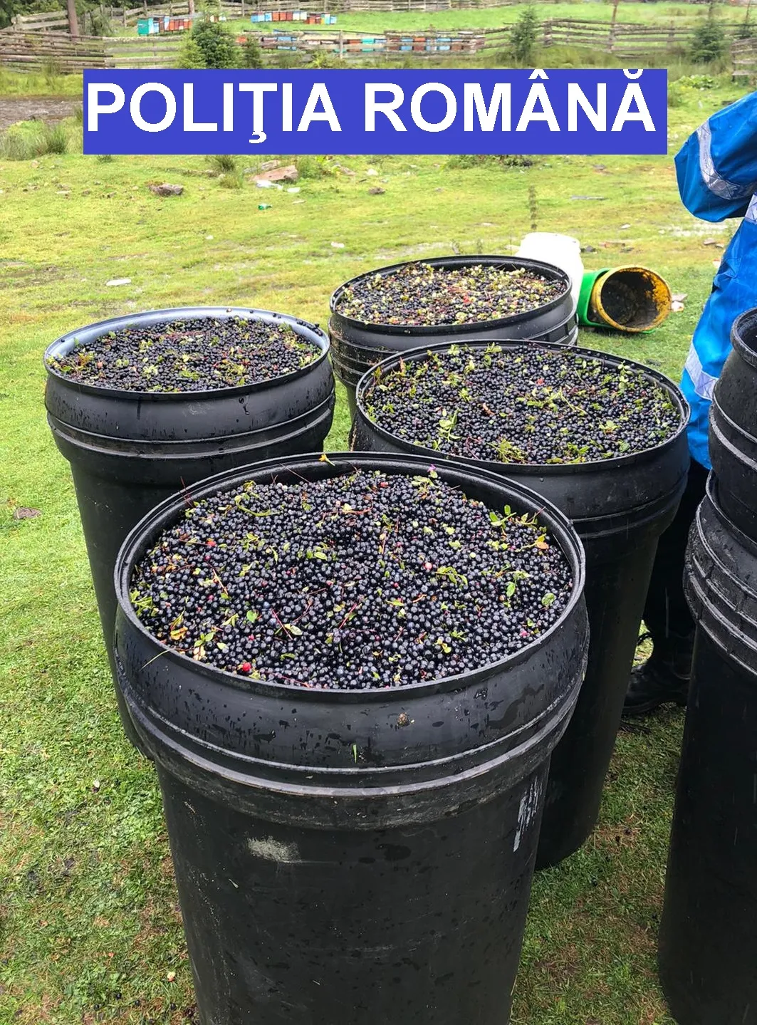 Cele 598 de kilograme de ciuperci și afine, în valoare de circa 6.900 lei au fost predate unei unități comerciale de profil în vederea valorificării.