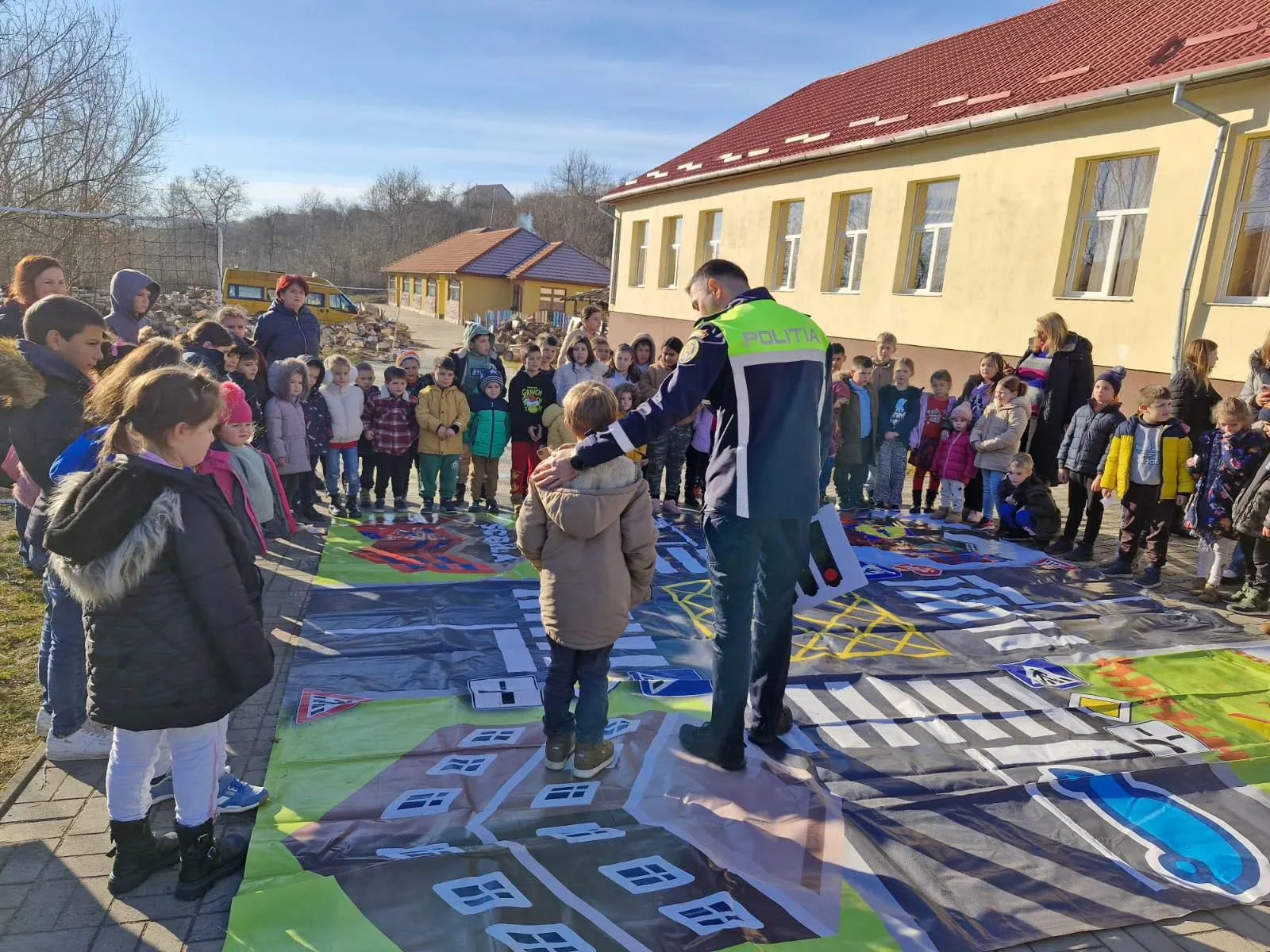 Polițiștii clujeni învață copiii din Ciurila cum să fie siguri în trafic: lecții interactive de educație rutieră
