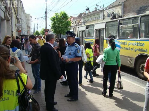 Politistii clujeni previn furtul din buzunare impartind pliante alaturi de studentii de la Facultatea de Stiinte Politice, intr-o campanie intitulata "Hai sa dam mana cu mana cu politia romana. Stop indiferentei".