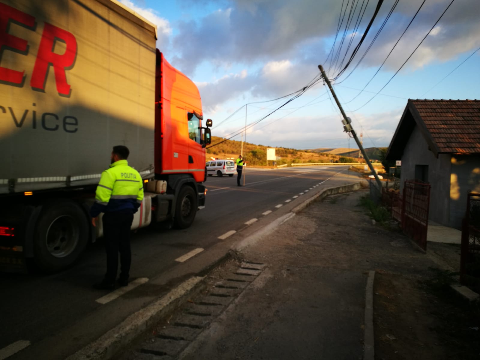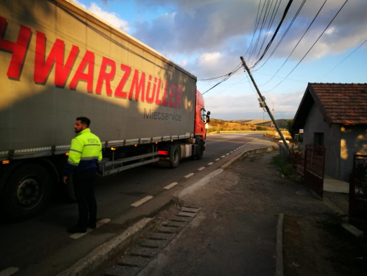 Politistii clujeni sunt pe faza. Susțin cablurile cu o scândură in Apahida pentru a se putea circula pe DN1C - VIDEO