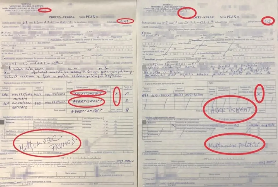 Pe unul dintre procesele verbale, șoferul care a primit Avertisment a scris: ”Mulțumiri Poliției!”.