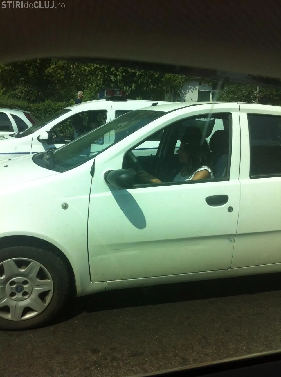 ”Acesti domnisori politisti stau la stop pe Calea Manastur fara centura de siguranta si flirtează cu aceasta domnisoara care era oprita la stop si cu geamul deschis. Oare cand o sa fie politisti si la noi exemplu societatii, cum sunt cei din occident? Cum poti tu ca politist sa aghete fetite din masina platita de prostu asta de popor, dar sigur acestia sunt progenituri de militieni”, ne-a scris Iuliu.