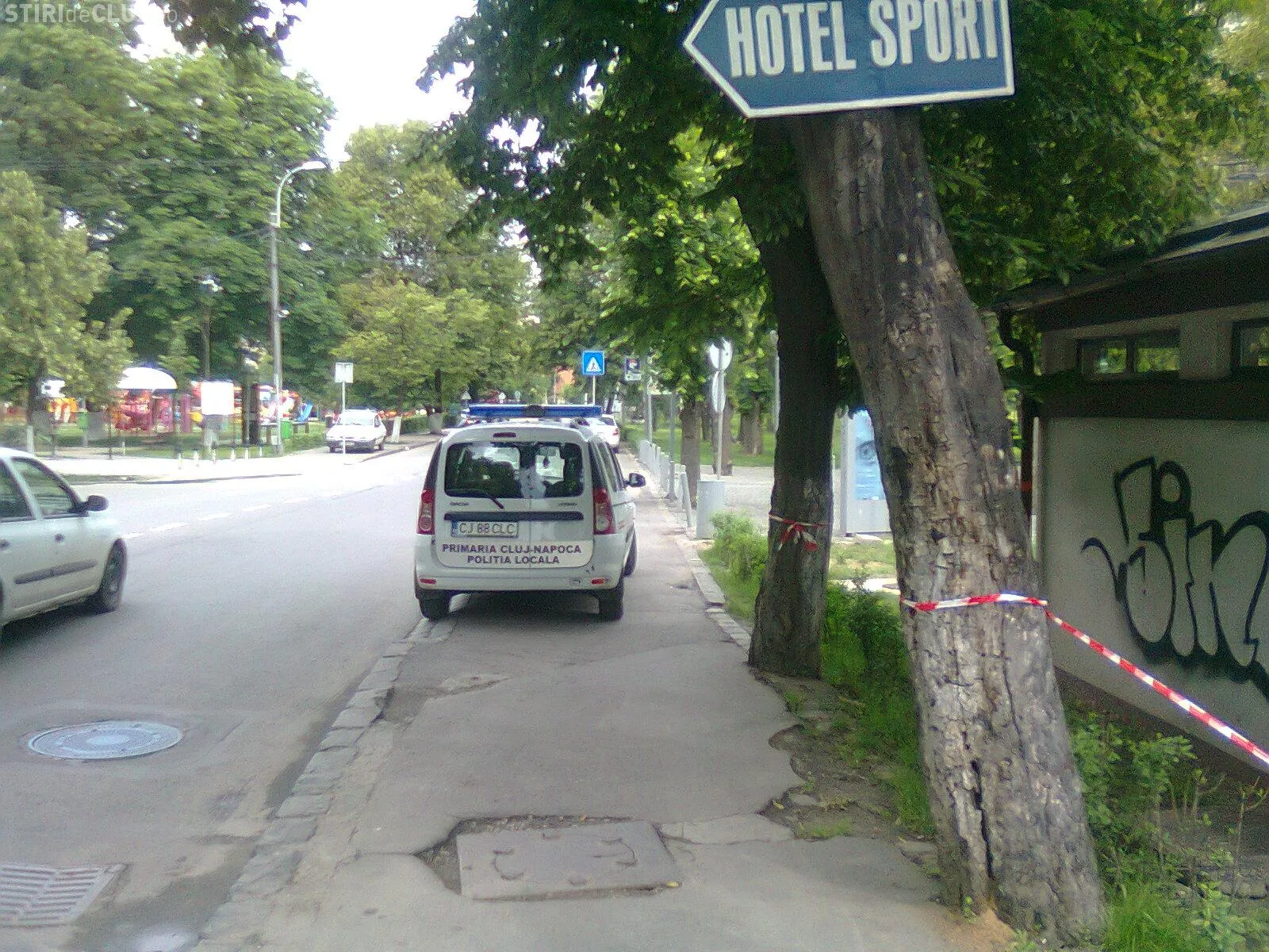 ”Trecand cu bicicleta pe trotuarul din spatele Casino-ului Chios a trebuit sa cobor de pe bicicleta ca sa pot trece de masina condusa de doi politisti de la Politia Locala Cluj, care au parcat neregulamentar pentru a merge la WC-ul public de langa.