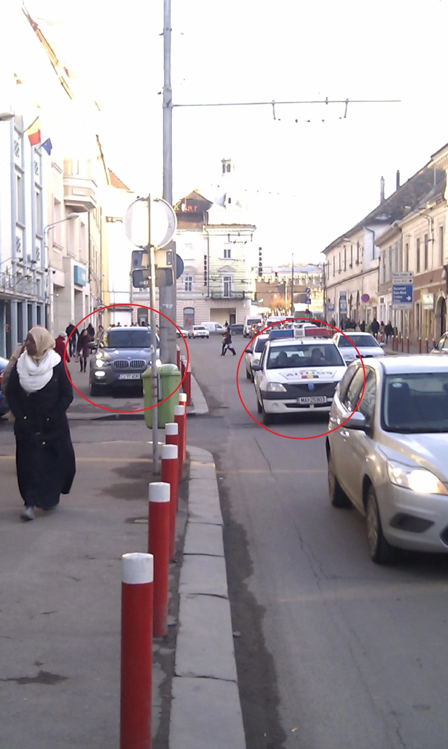 Politistii nu au atributii de a-l amenda pe soferul indisciplinat, acest lucru putand fi facut doar de politia comunitara. Dar pentru ca soferul BMW-ului era in masina si vorbea la telefon, politistii ar fi putut macar sa ii ceara sa paraseasca trotuarul. Nu au facut-o, ba mai mult au mai mers cativa metri , pana in fata magazinului Central si au parcat si ei neregulamentar, pe carosabil, insa, adica in zona unde au atributii legale de a da amenzi pentru parcare neregulamentara.