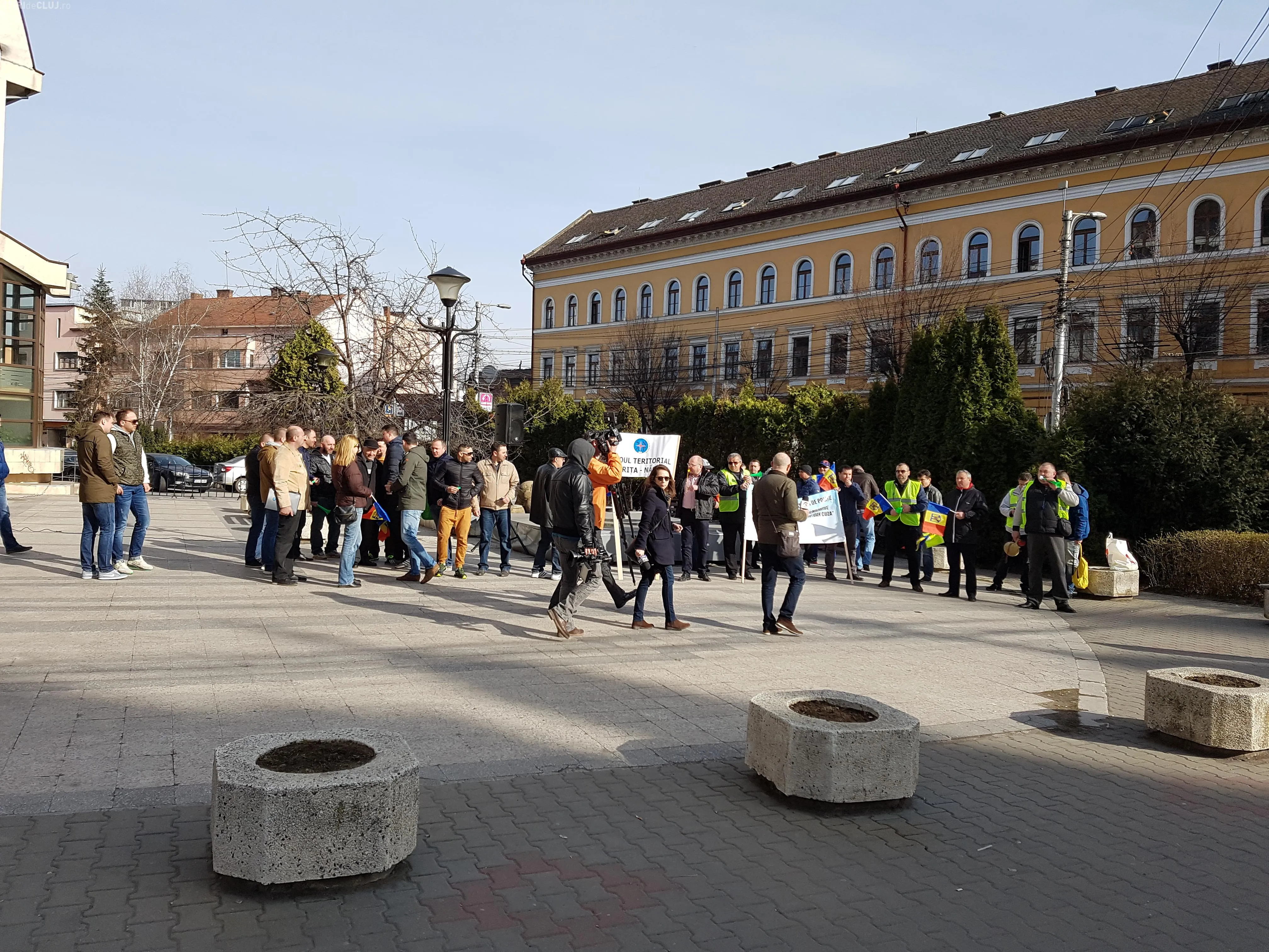 Polițiștii clujeni au protestat, joi dimineața, de la ora 9.00, în fața Prefecturii Cluj.