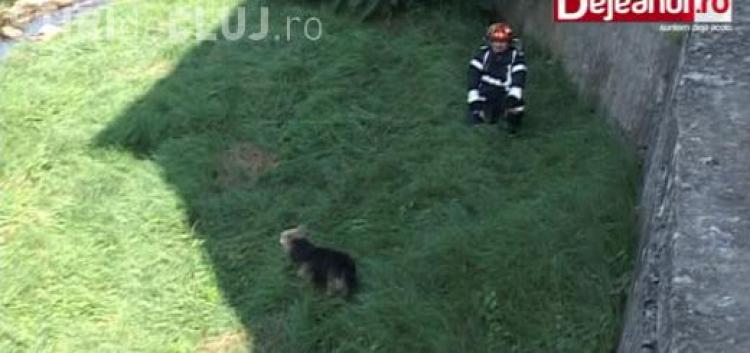 Pompieri chemți să salveze un câine la Dej. Patrupedul le-a dat de furcă VIDEO