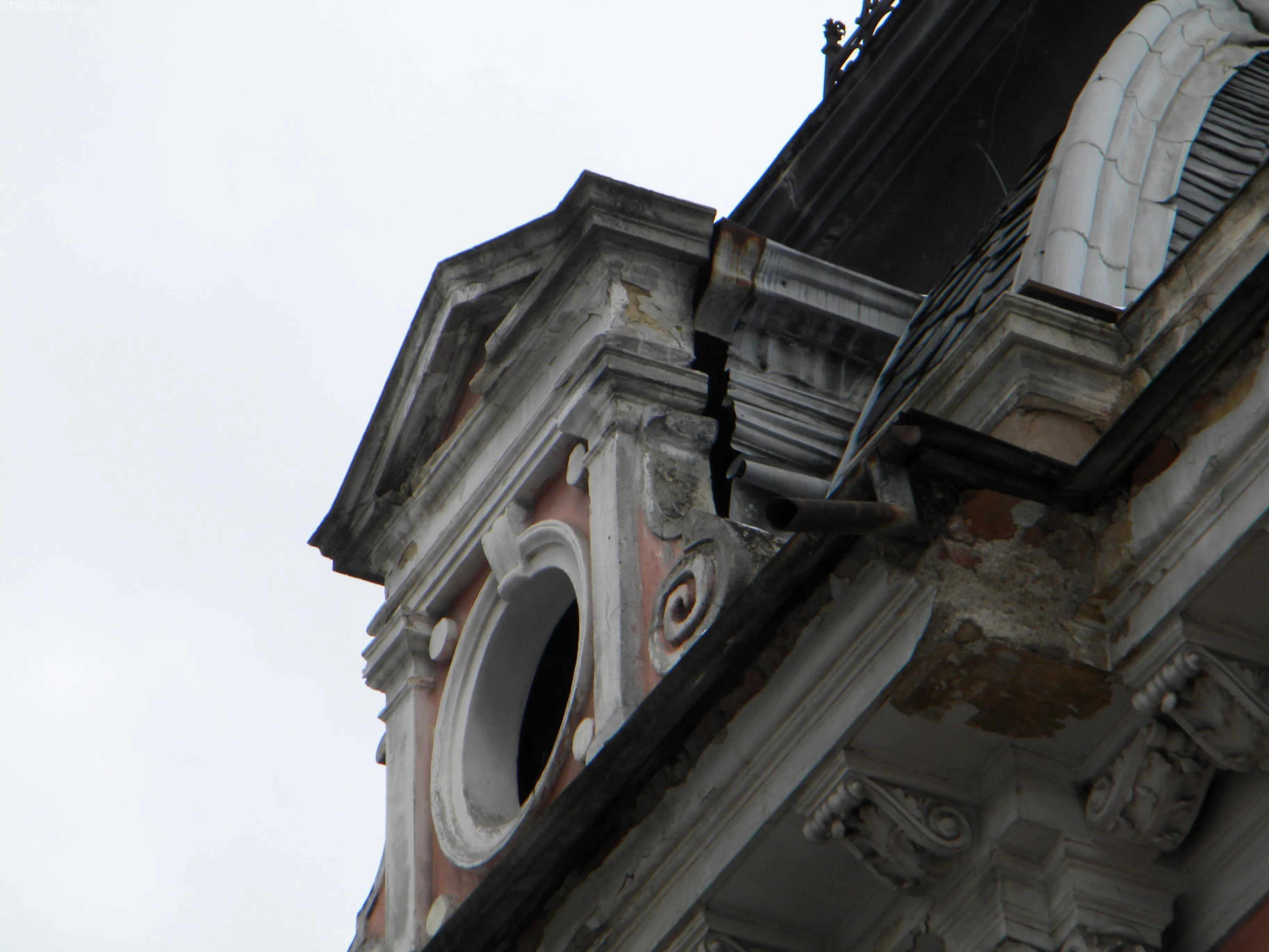 Pompierii au intervenit la clădirea în care este barul Le General. Un ornament gigant s-a desprins și riscă să cadă UPDATE De ce nu a fost demolat?