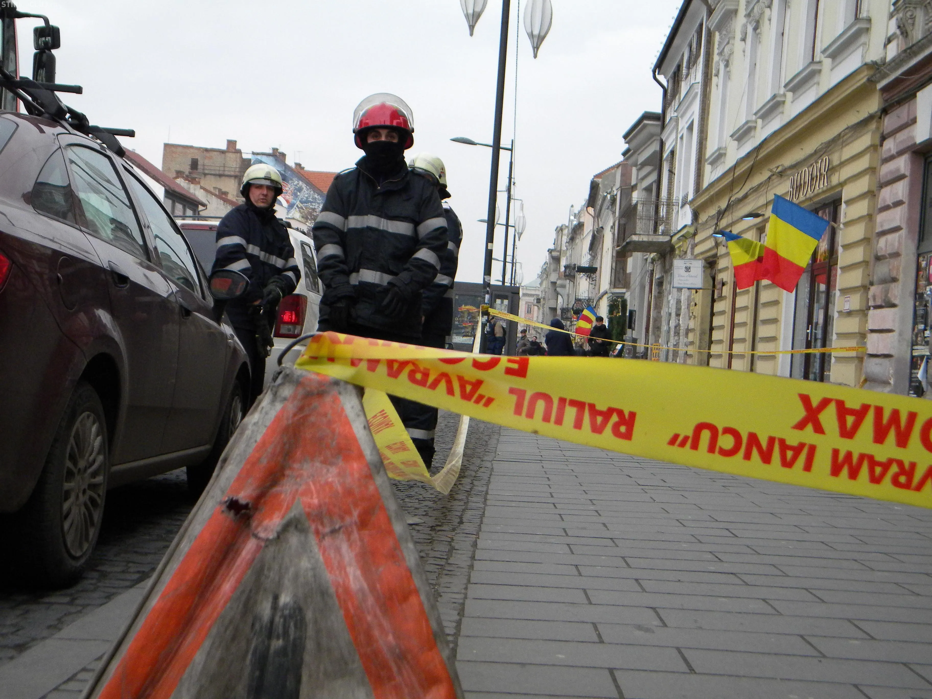 Pompierii au fost chemați de două ori pe Bulevardul Eroilor, vineri dimineața, la clădirea în care funcționează barul Le General. Un ornament uriaș din acoperiș s-a desprins și risca să cadă în capul trecătorilor.
