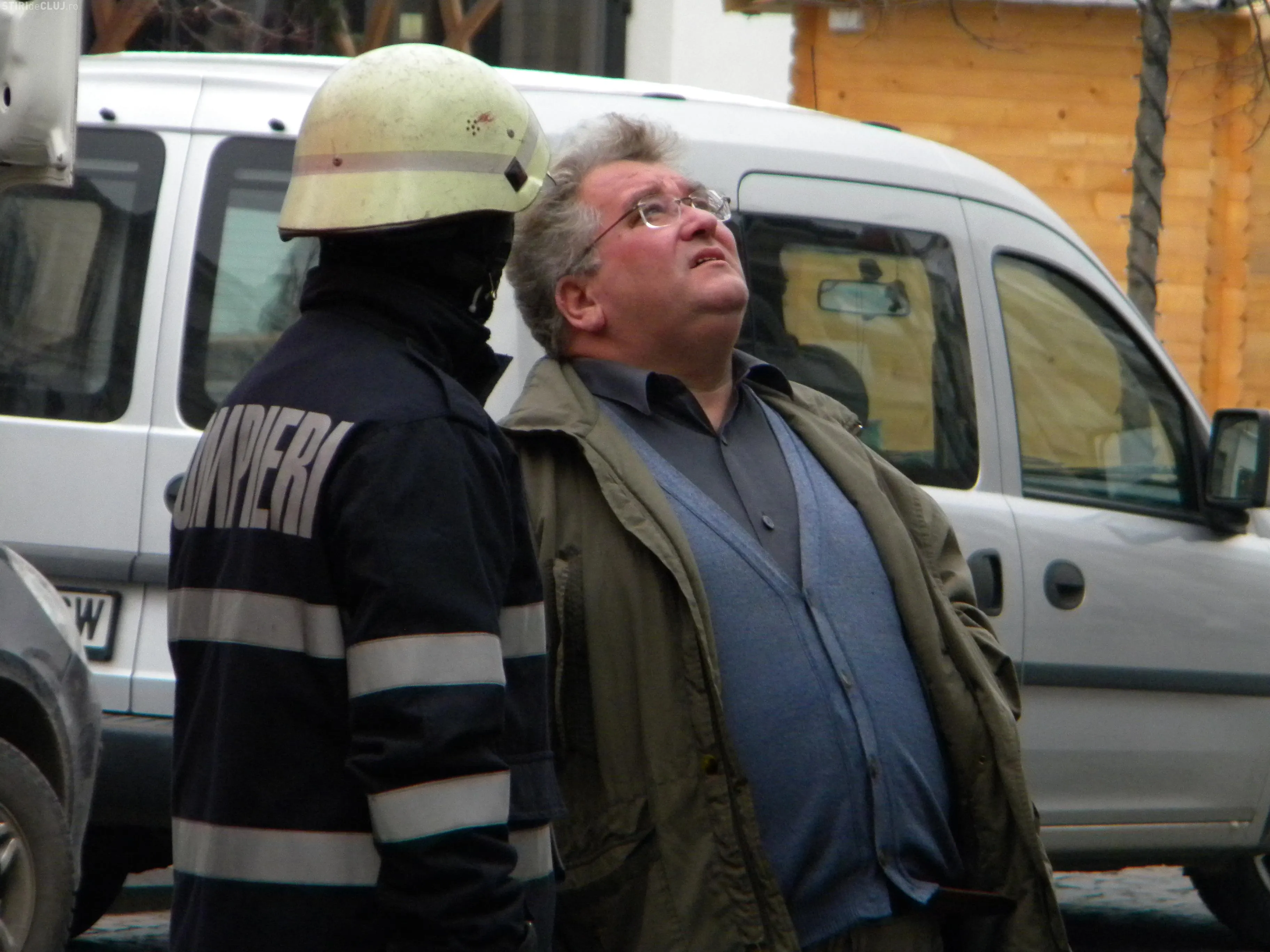 ”Bucata asta mare de cărămidă și tencuială s-a desprins de ceva vreme. Acum se și vedea cum se mișcă, dacă bate vântul. Am chemat în această dimineață pompierii, dar prima dată au spus că nu pot face nimic. Cineva l-a sunat pe generalul Vasile Șomlea, șeful de la ISU Cluj, iar acum (în jurul orei 11.00) pompierii au revenit”, a declarat unul dintre cei care locuiesc în zonă.