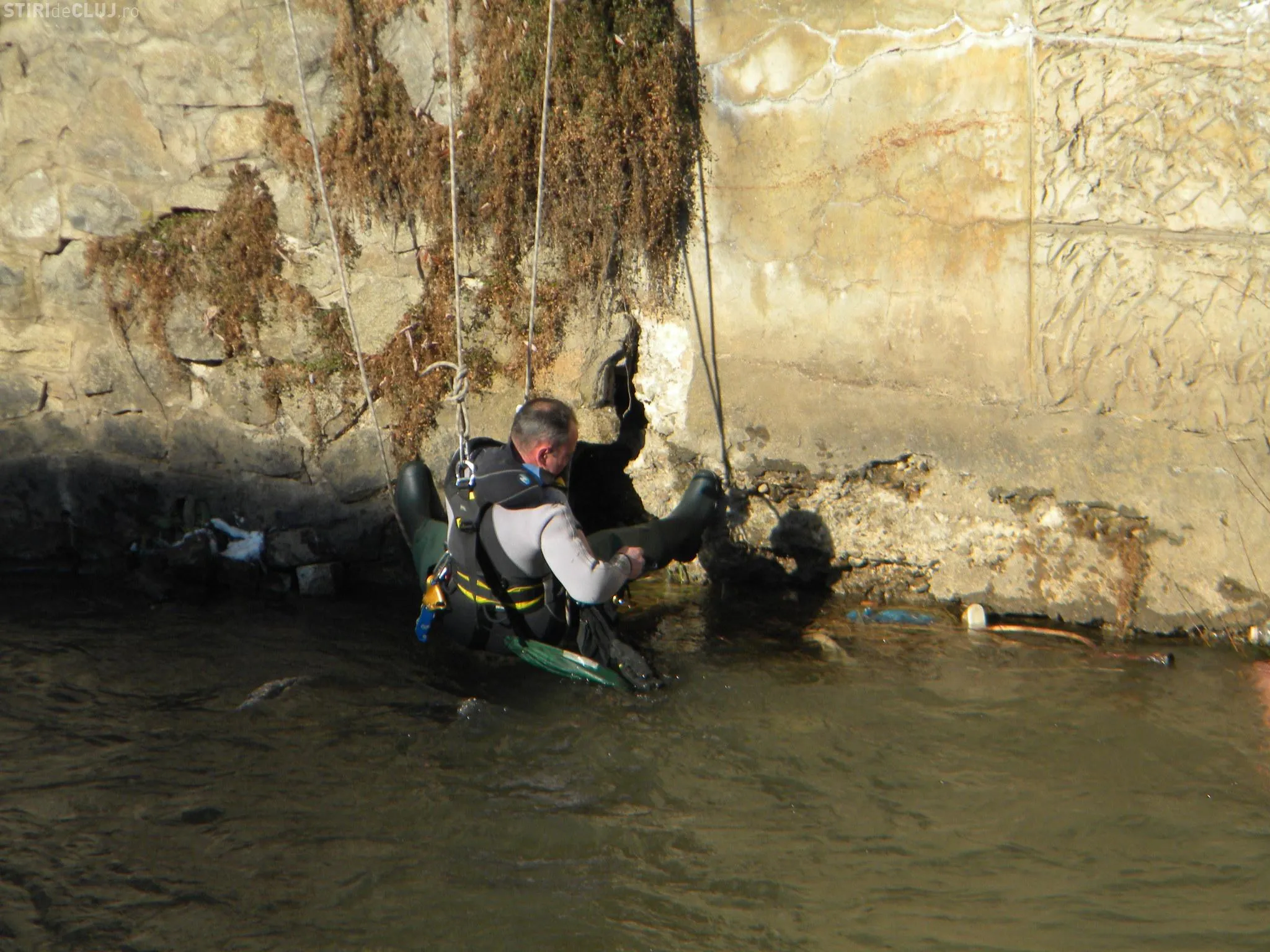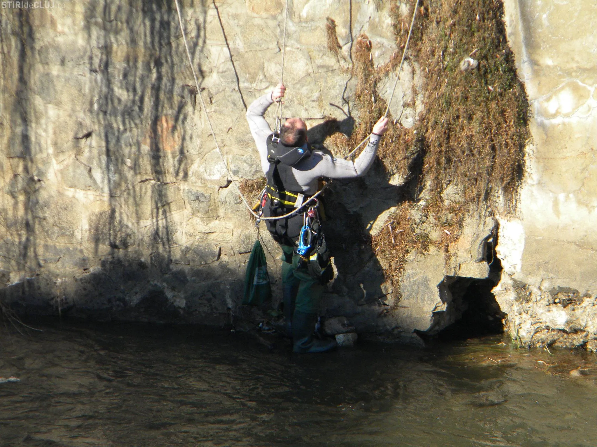 Pompierii au intervenit sa salveze o pisica din Somes, la podul din dreptul strazii Dacia VIDEO si FOTO