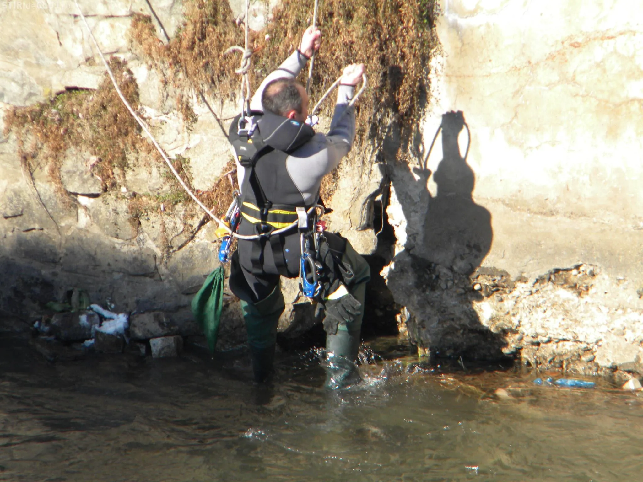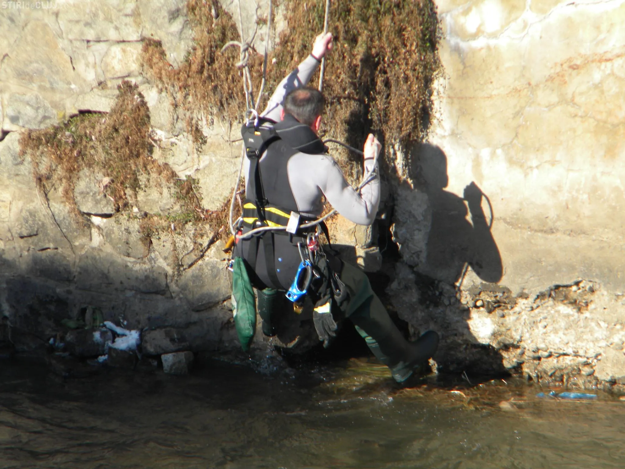 Un pompier a coborat peretele din zona podului, pana a ajuns la apa, deoarece pisica s-a ascuns intr-o crapatura din zid. "M-am uitat atent, dar nu am mai vazut-o. Cel mai probabil s-a ascuns acolo sau a iesit prin alta parte. Poate ca acea crapatura comunica si cu canalizarea si a iesit pe acolo. Oricum nu avem ce sa fac pentru ca nu as fi putut intra in acea spartura din zid", a spus pompierul care a coborat in apa.