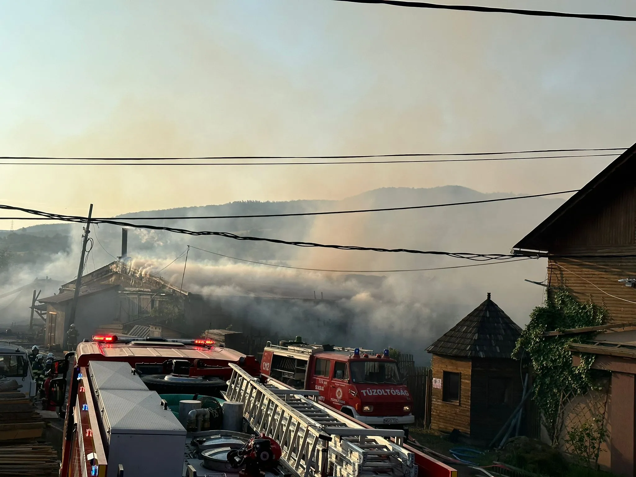 Foto: Incendiul devastator la un depozit de carburant şi lemne din Eremitu, Mureș