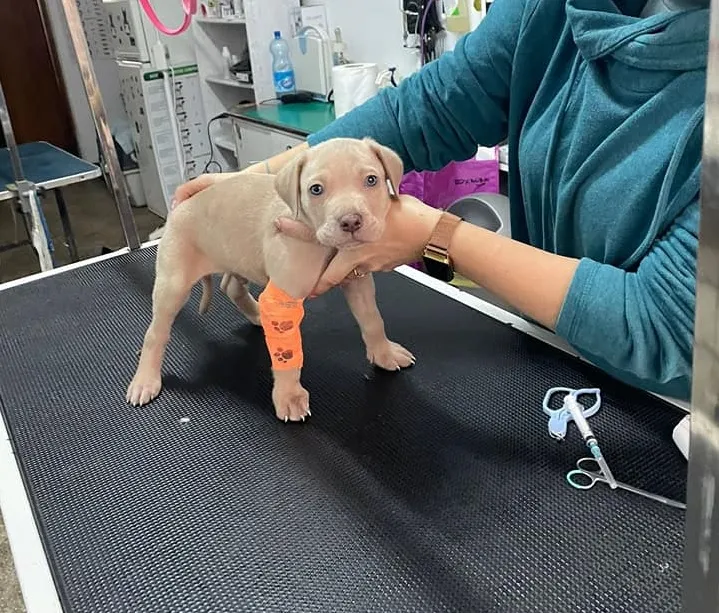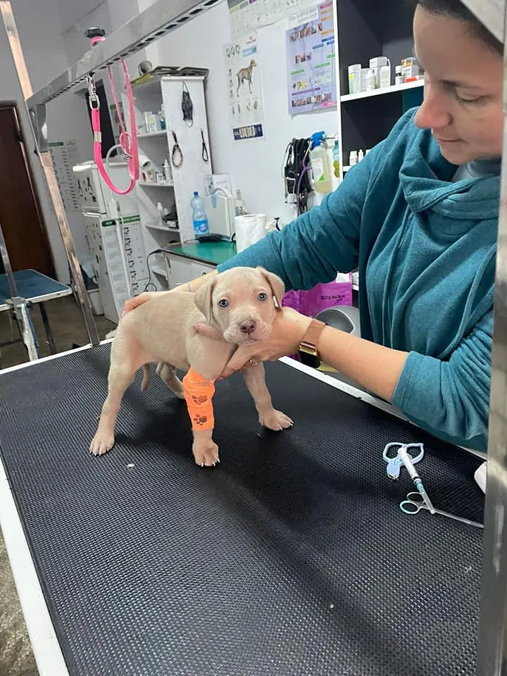 Cum la o intervenție nimeni nu este lăsat în urmă, imediat ce au strâns echipamentele, salvatorii au luat cu ei cățelul ce tremura de spaimă. Când au ajuns ajuns la unitate, au văzut că micul patruped suferise o rană la o lăbuță. Fără să stea pe gânduri, au luat legătura cu veterinarul din oraș.