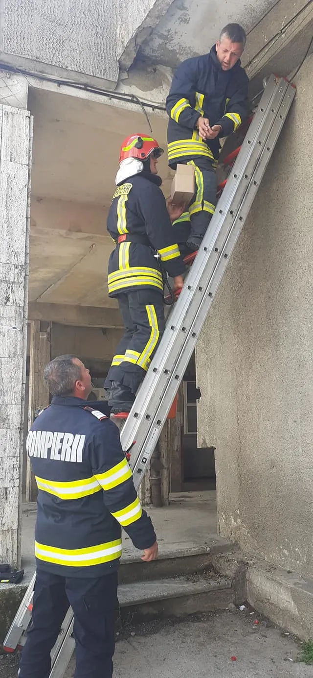 Pompierii din Huedin au salvat cinci pui de rândunică ce vor fi mutați în altă zonă.