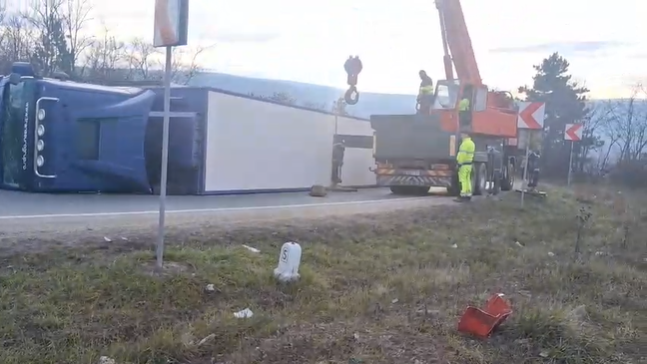 Pompierii încă acționează, în aceste momente, cu două automacarale ale unor operatori privati pentru readucerea pe roți a autocamionului, care s-a răsturnat pe E81, în zona localității Topa Mică, transportând aproximativ 200 de porci.