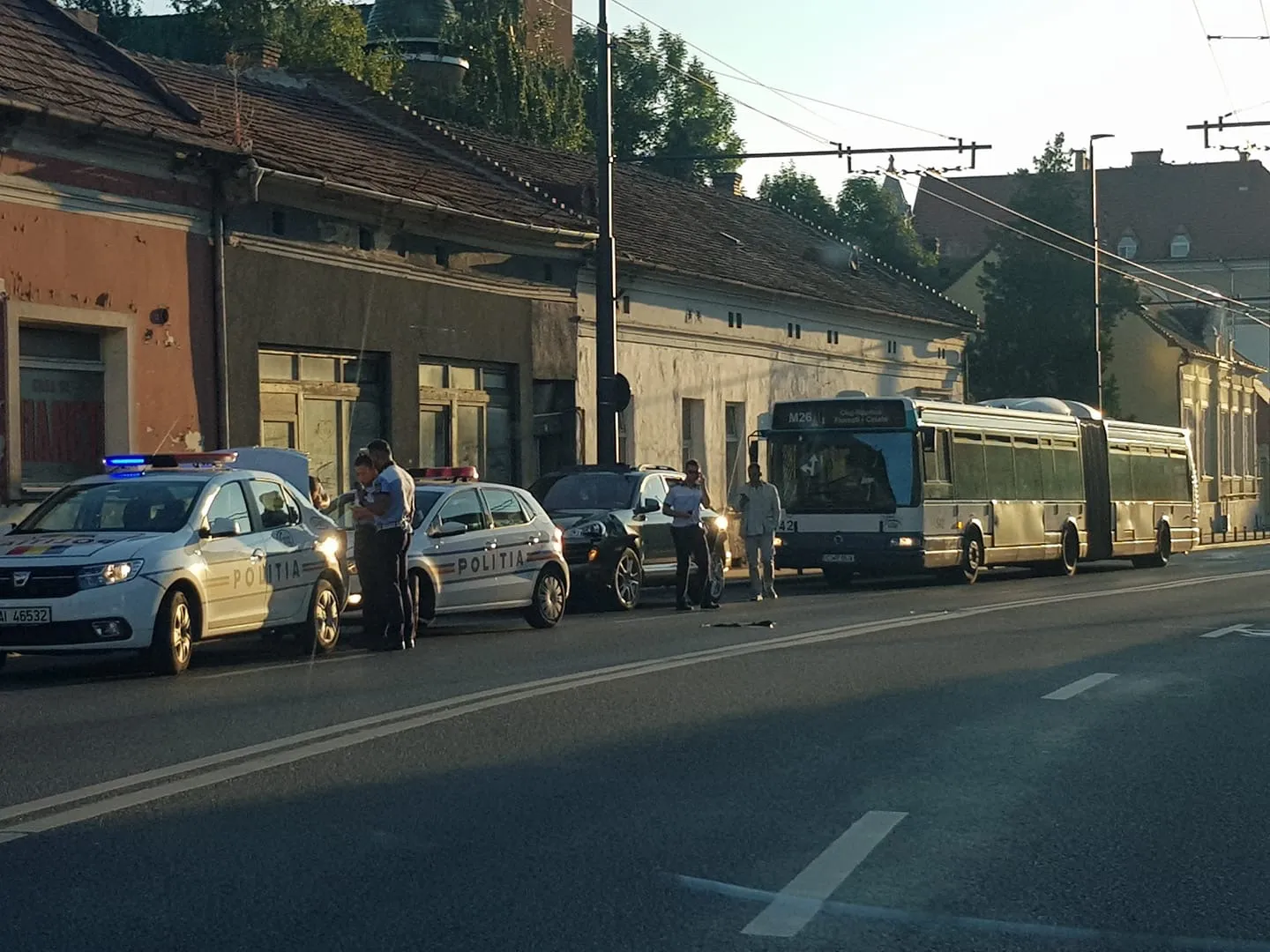 Din primele informații, în accident au fost implicate un Porsche Cayenne și un autobuz.