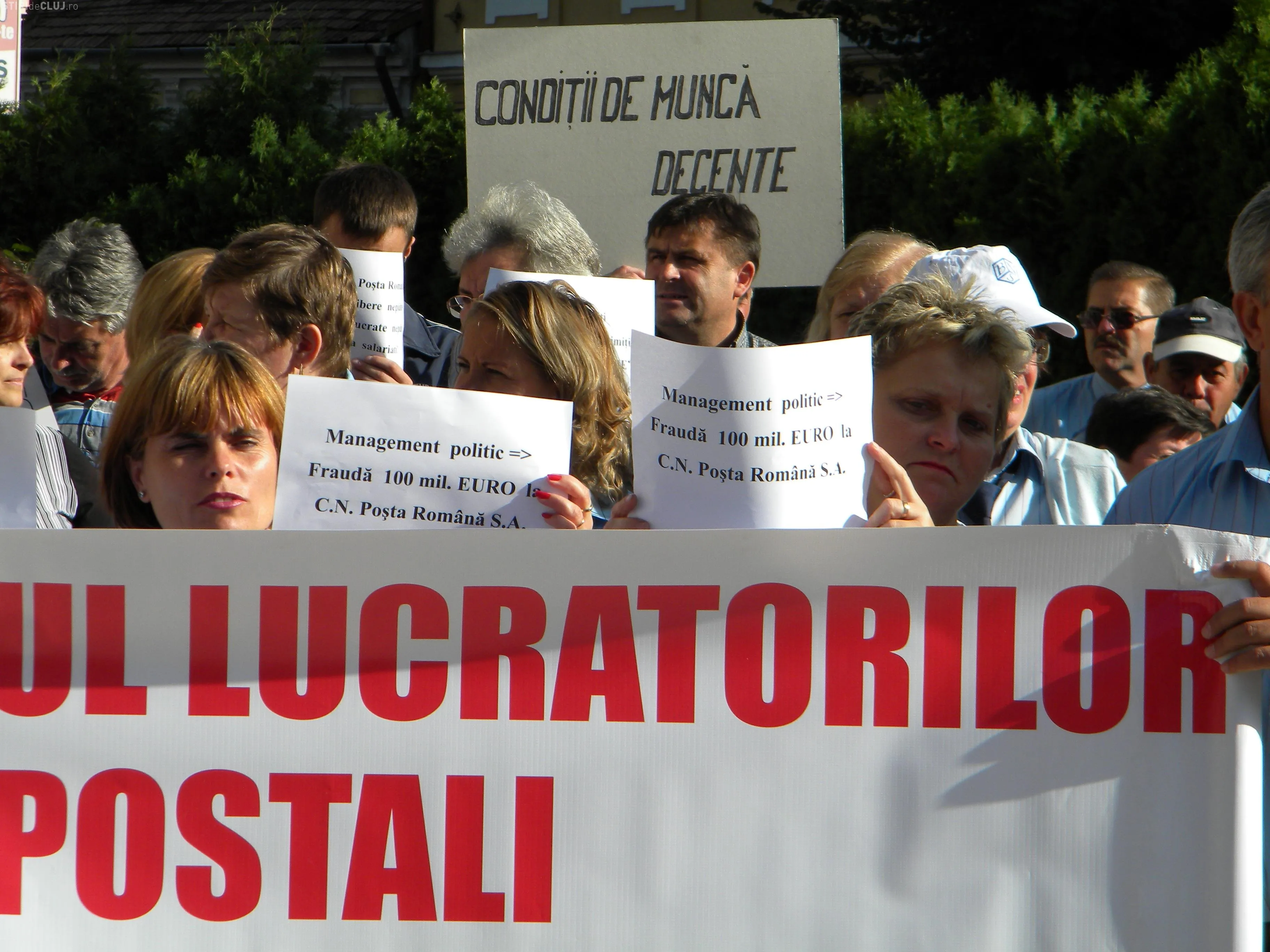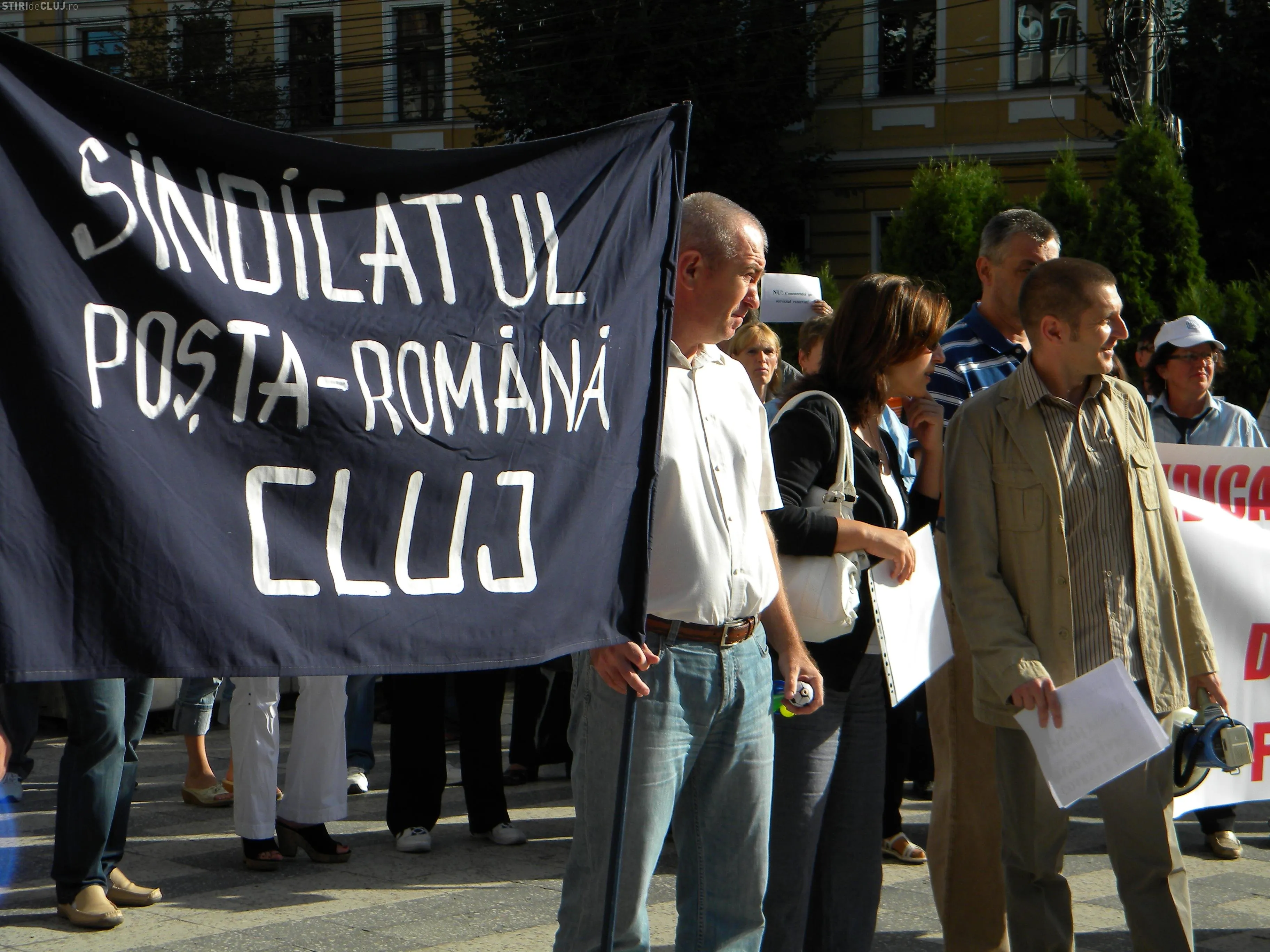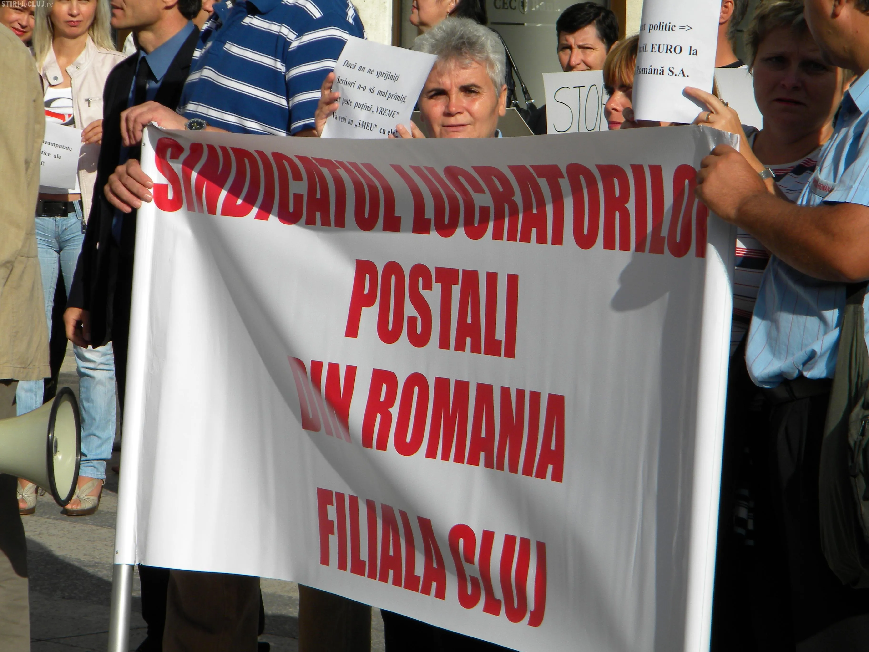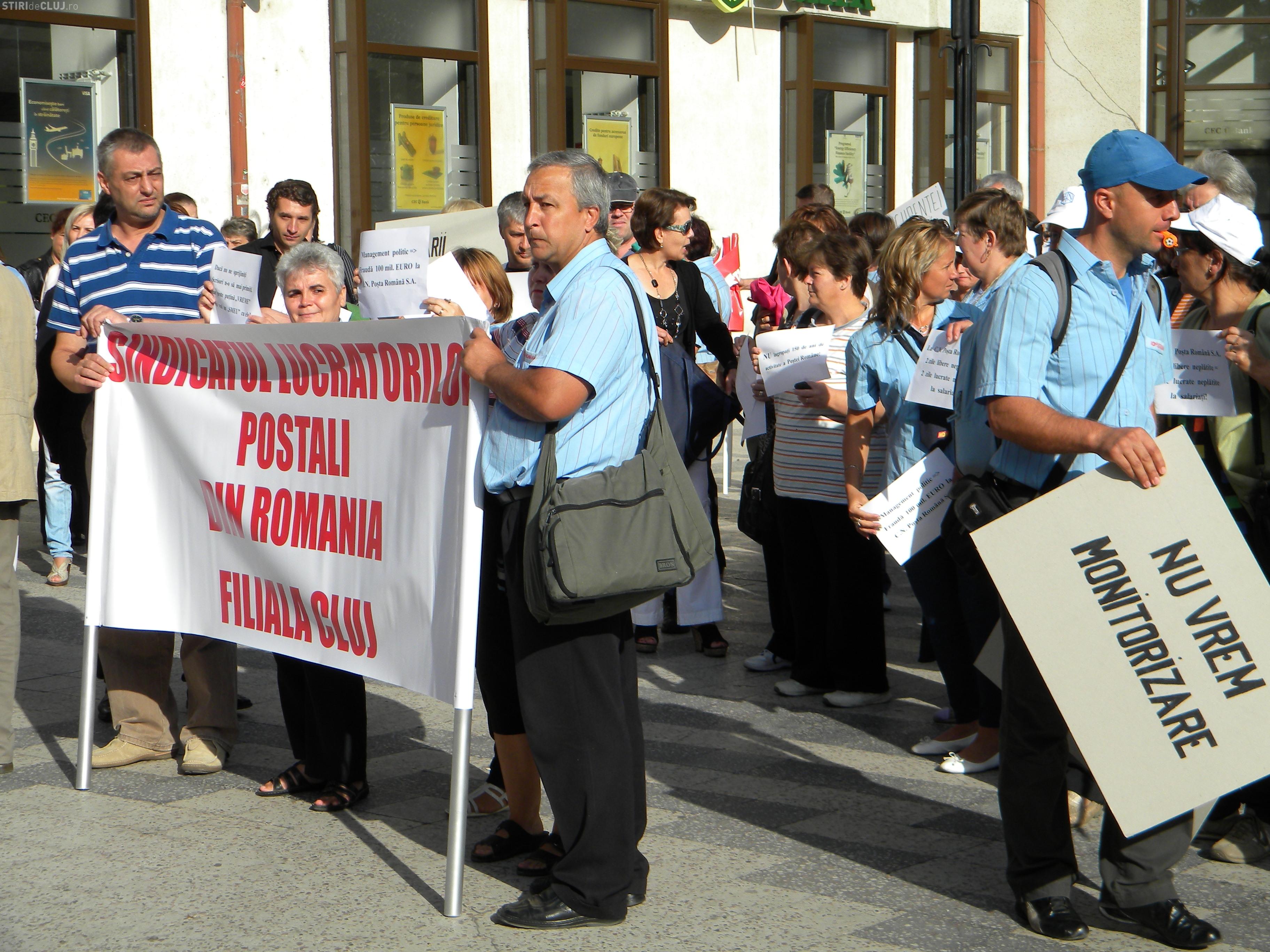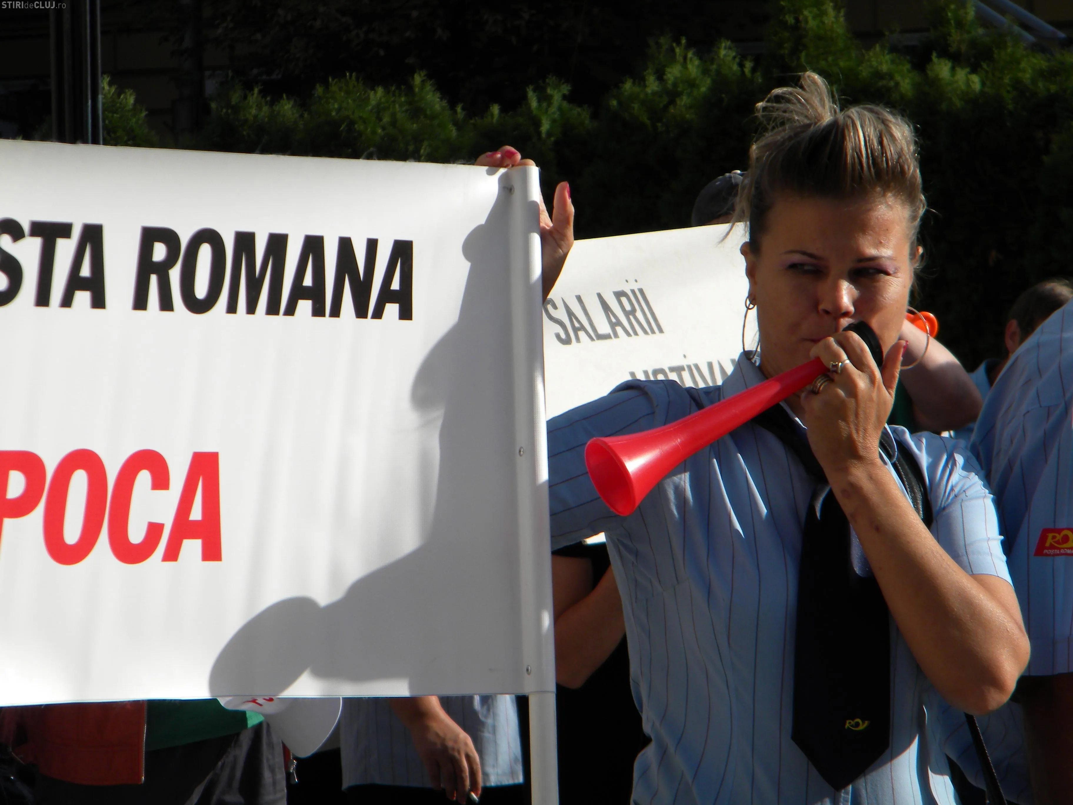 La protest au fost prezenţi, începând cu ora 09:00, peste 100 de angajaţi ai Poştei Române, filiala Cluj.