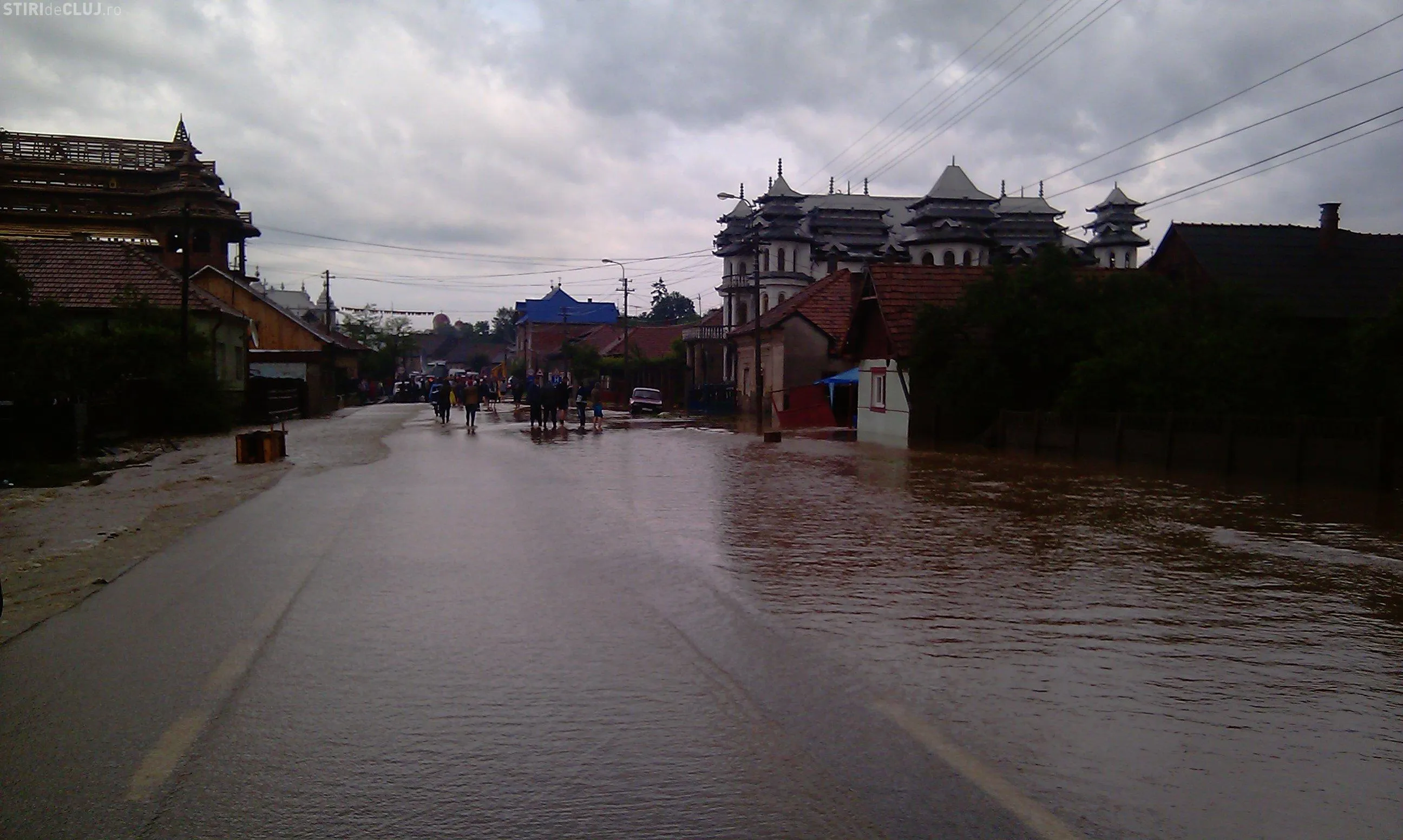 VIDEO- Masini luate de ape la Huedin! Inundatii la Huedin: trafic blocat pe DN1 E60 si 200 de persoane evacuate cu pompierii