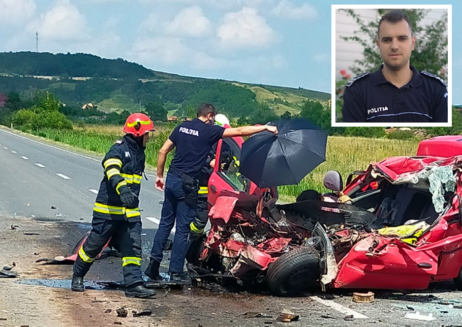 ”Imediat după ce am ieșit din post, după aproximativ 200 de metri de mers, m-au sunat colegii de la Baciu pentru a mă informa de producerea accidentului. Le-am comunicat că știu de producerea lui și mi-am continuat deplasarea. La locul accidentului am găsit autoturismul avariat din toate părțile, fiind pe axul drumului, și am mers să evaluez starea victimelor”, a mai spus agentul.