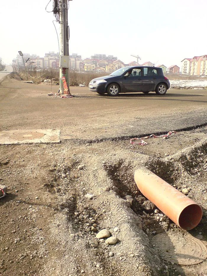 "De observat cum municipalitatea a asfaltat cu o palma de material strada pentru a circula camioanele de mare tonaj intrucat e accesul catre acel hotel in constructie si sub acea palma de asfalt imediat o teava de scurgere. Oare cel care a efectuat lucrarea nu s-a gandit ca se va sparge foarte repede?", ne-a mai scris Bodo Zoltan