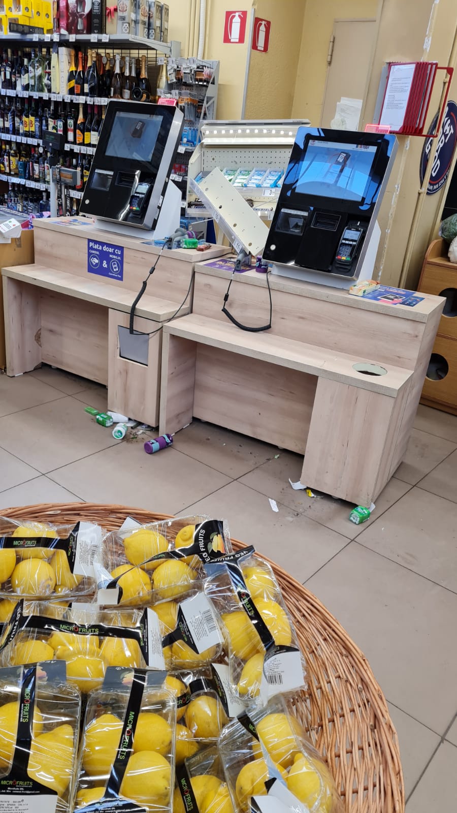 Din verificările efectuate la fața locului a reieșit faptul că o persoană necunoscută s-ar fi manifestat agresiv, distrugând produse aflate în zona caselor de marcat, ulterior părăsind unitatea comercială.