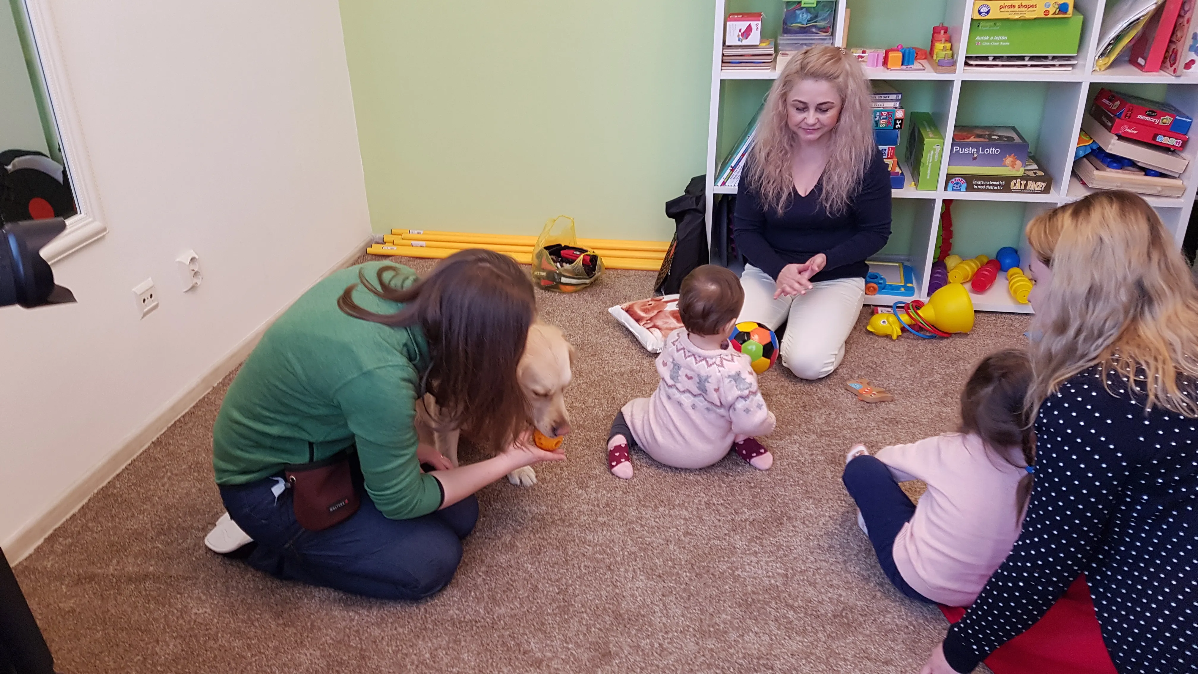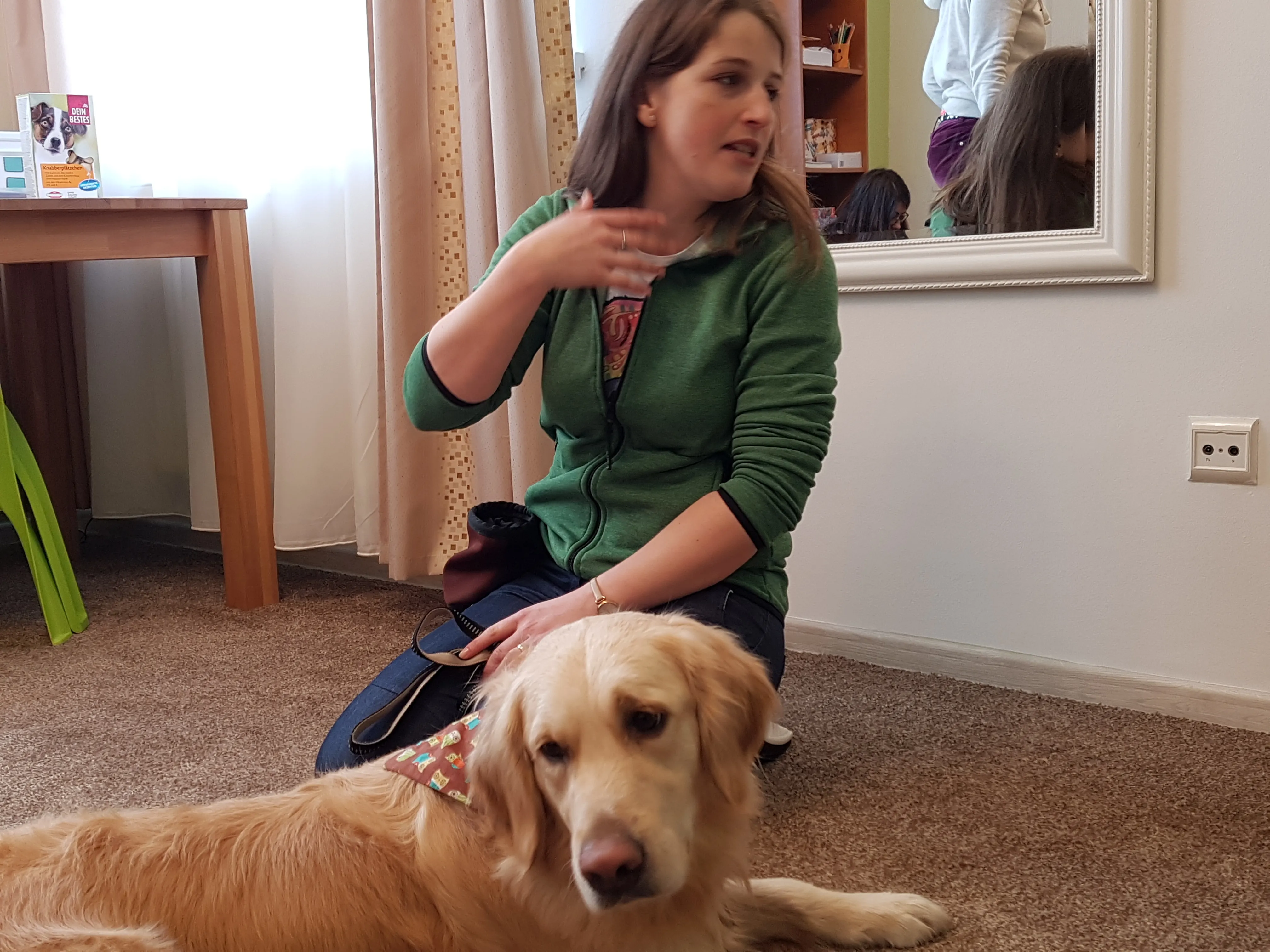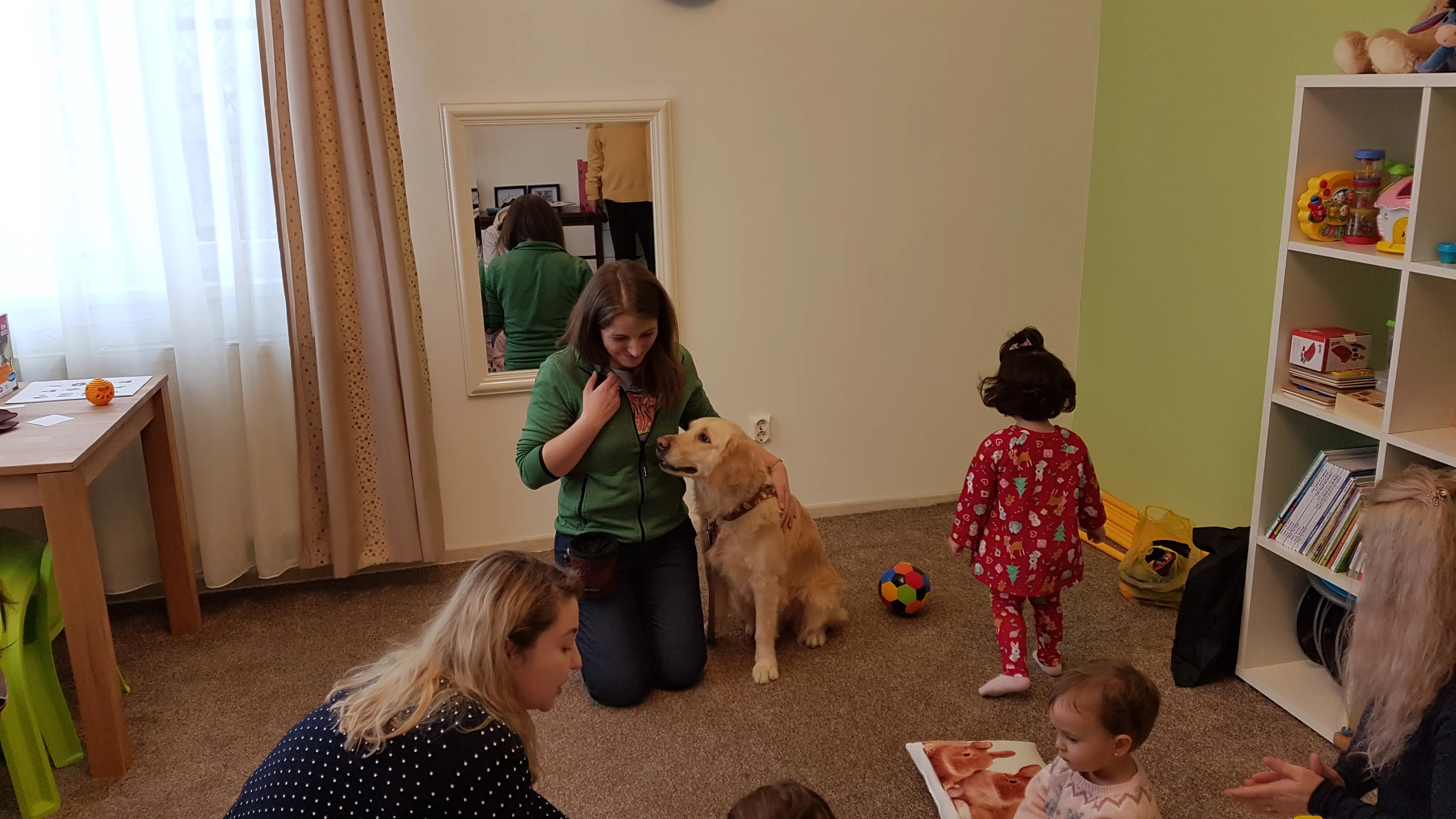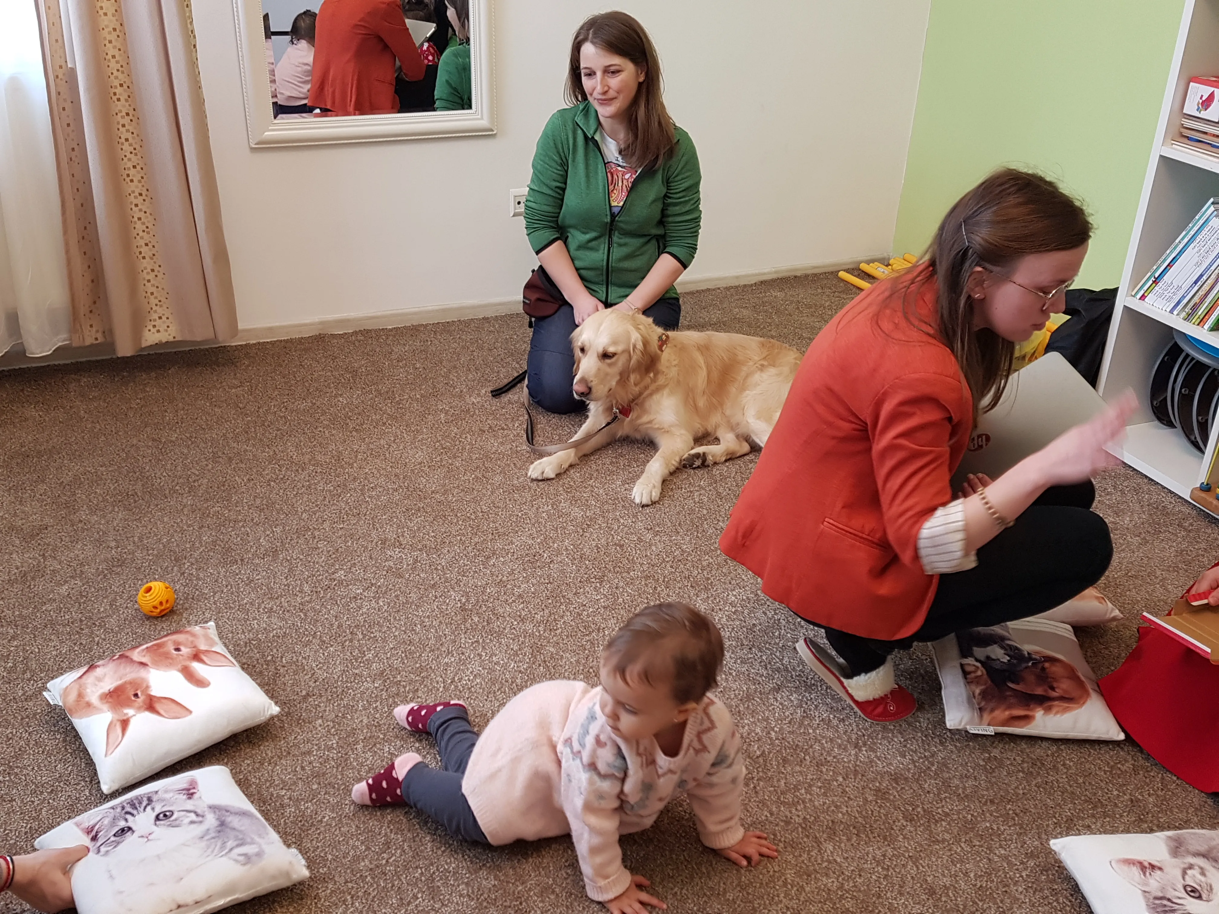Sâmbătă dimineața, la primele ședințe de terapie a participat cățelușa Szello, supravegheată de conductorului canin, Fulop Csilla.