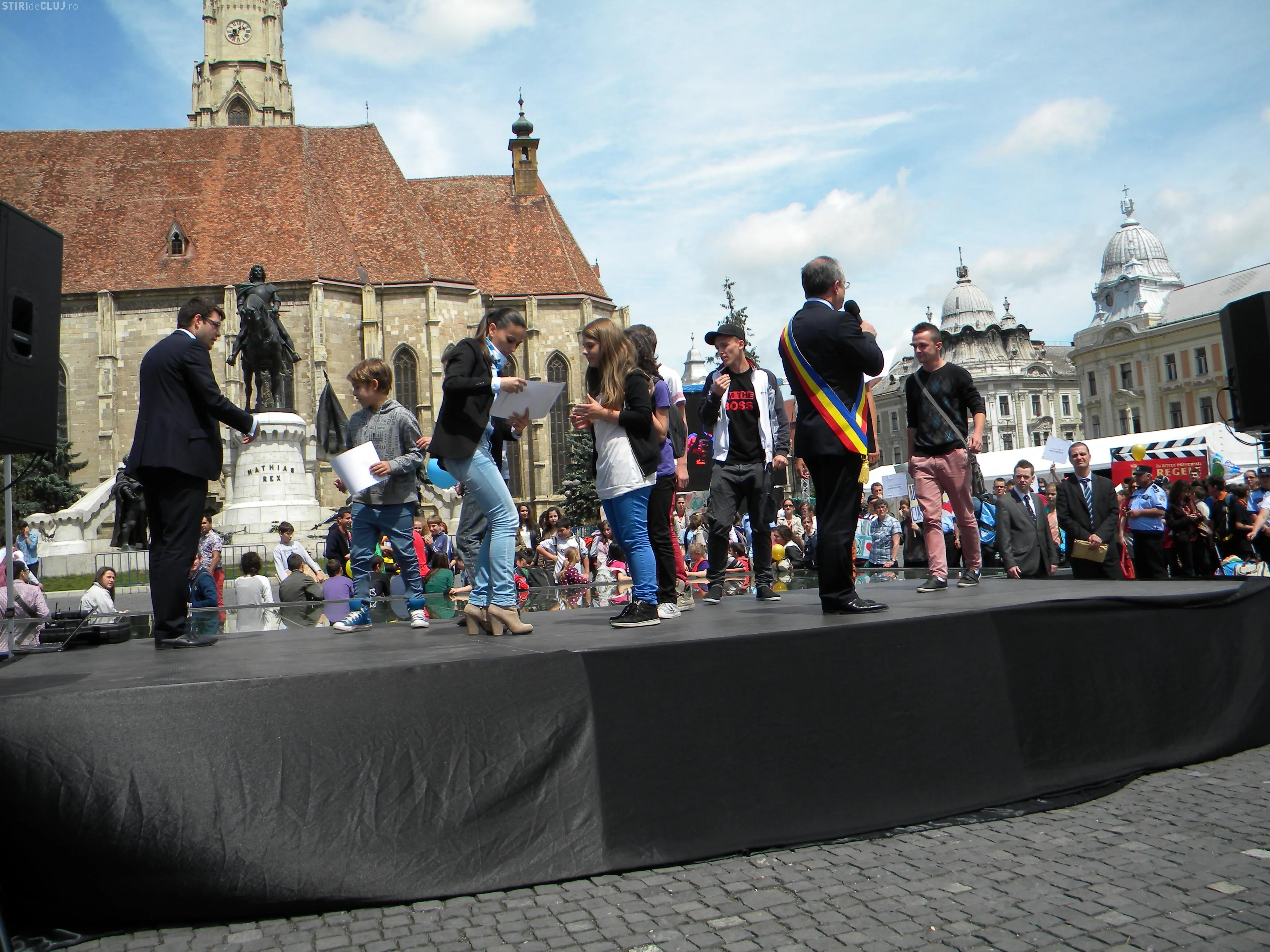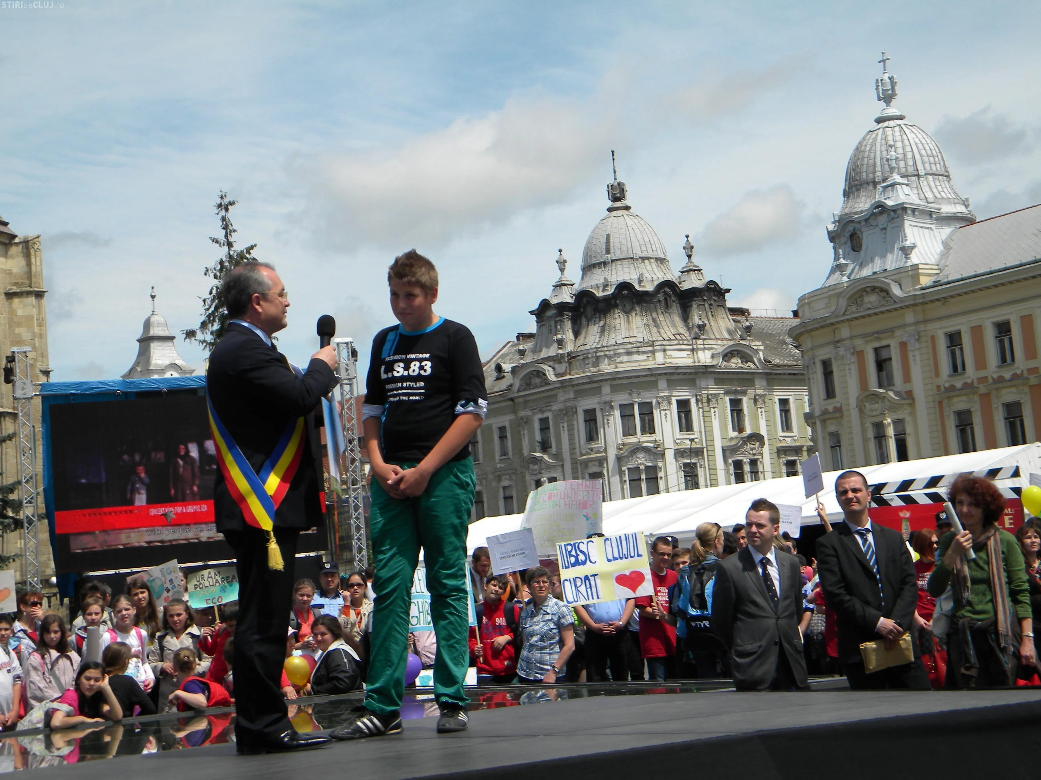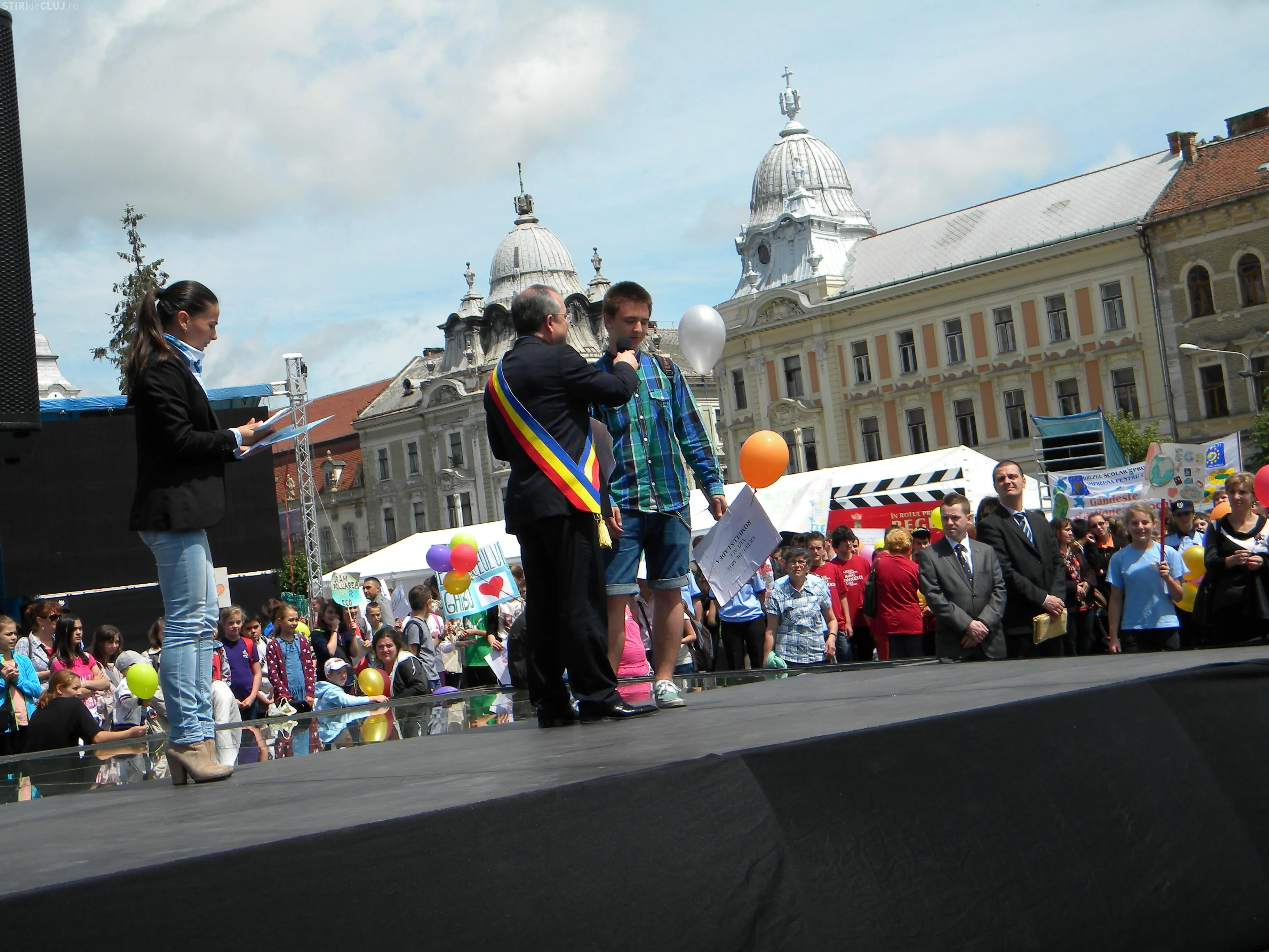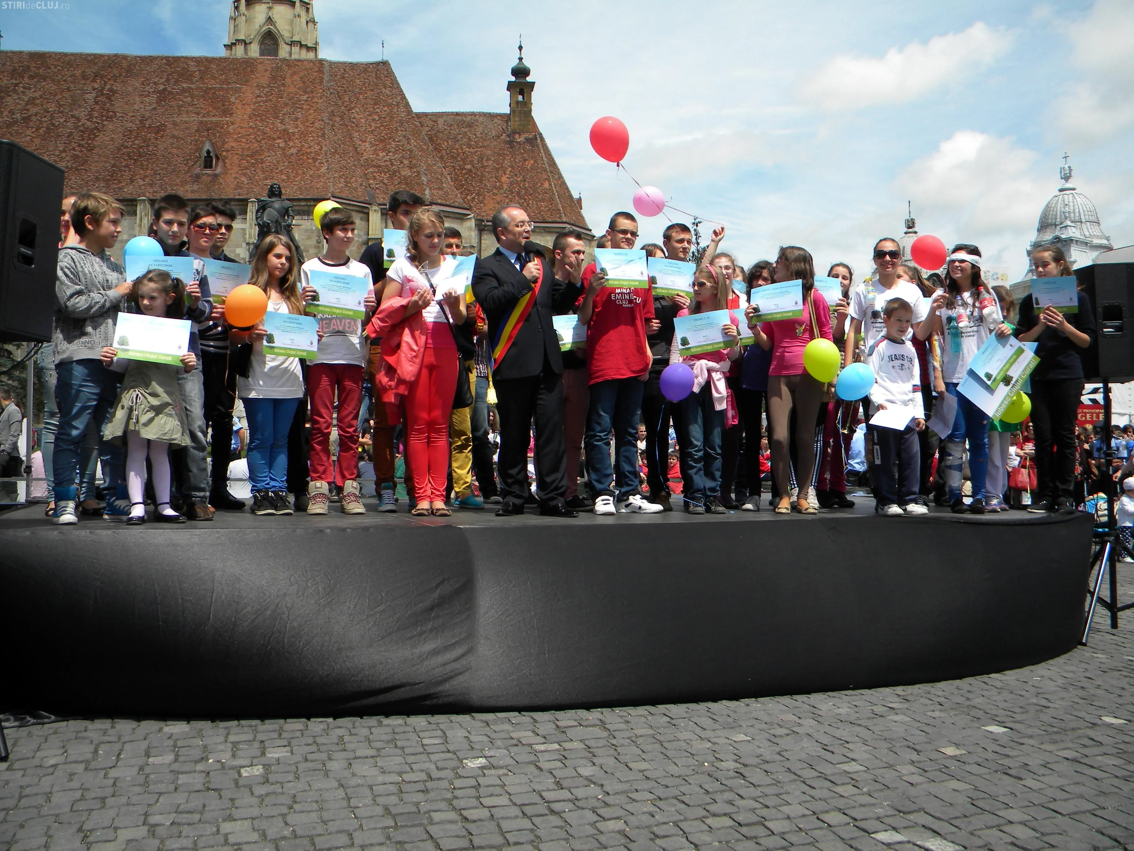 Elevii care s-au înscris în concursul ecologic Iubesc Clujul Curat 2013 au fost premiați de Emil Boc, vineri, 31 mai, în Piața Unirii.