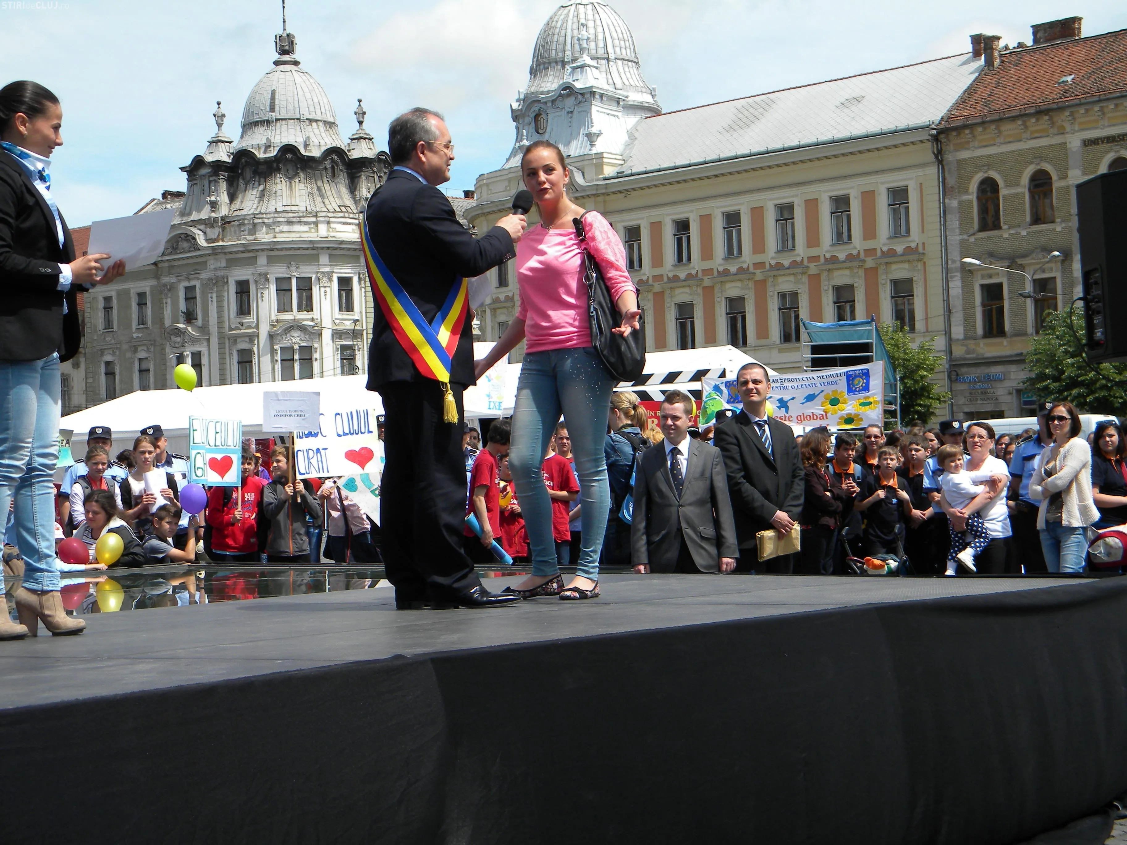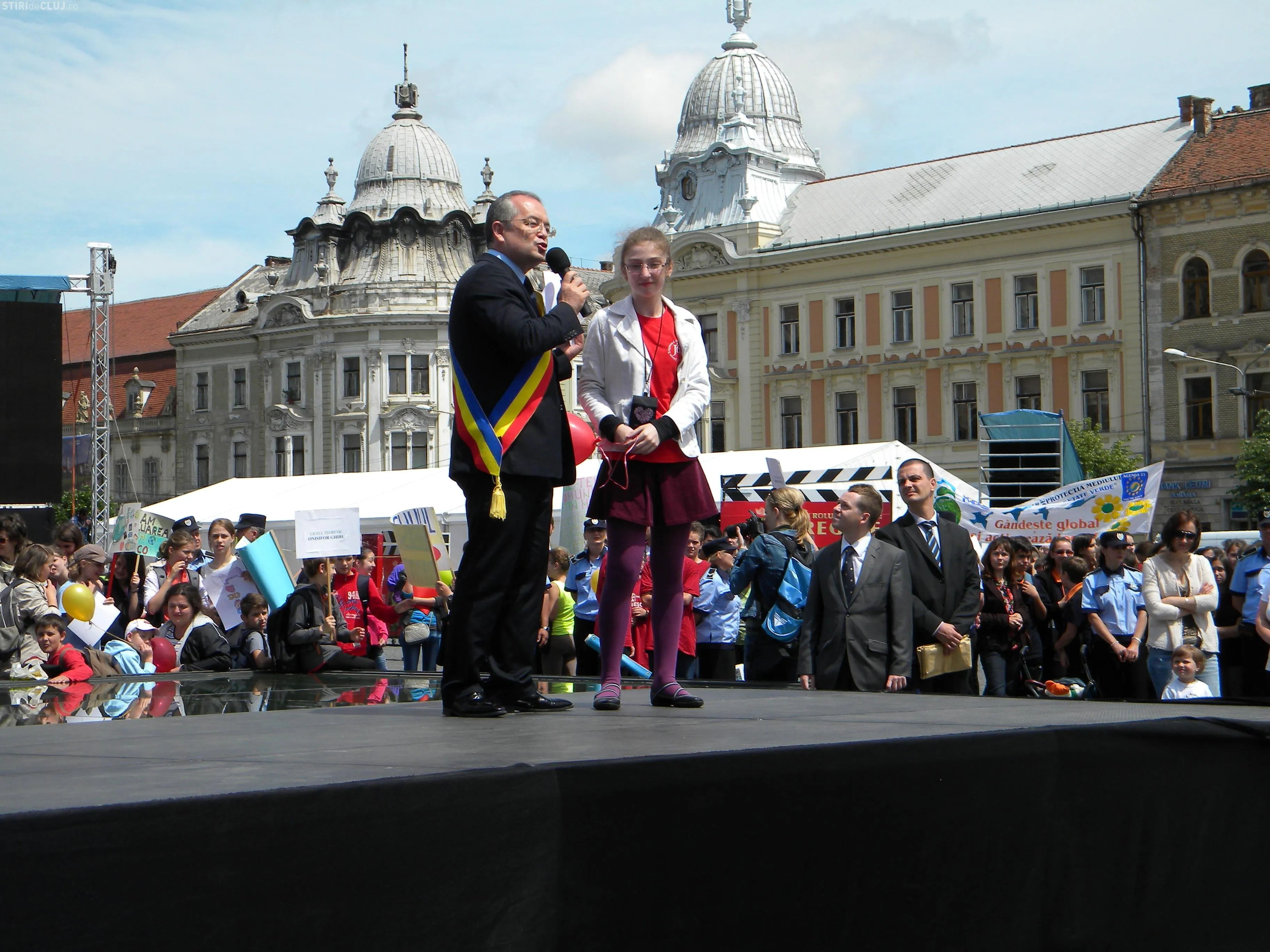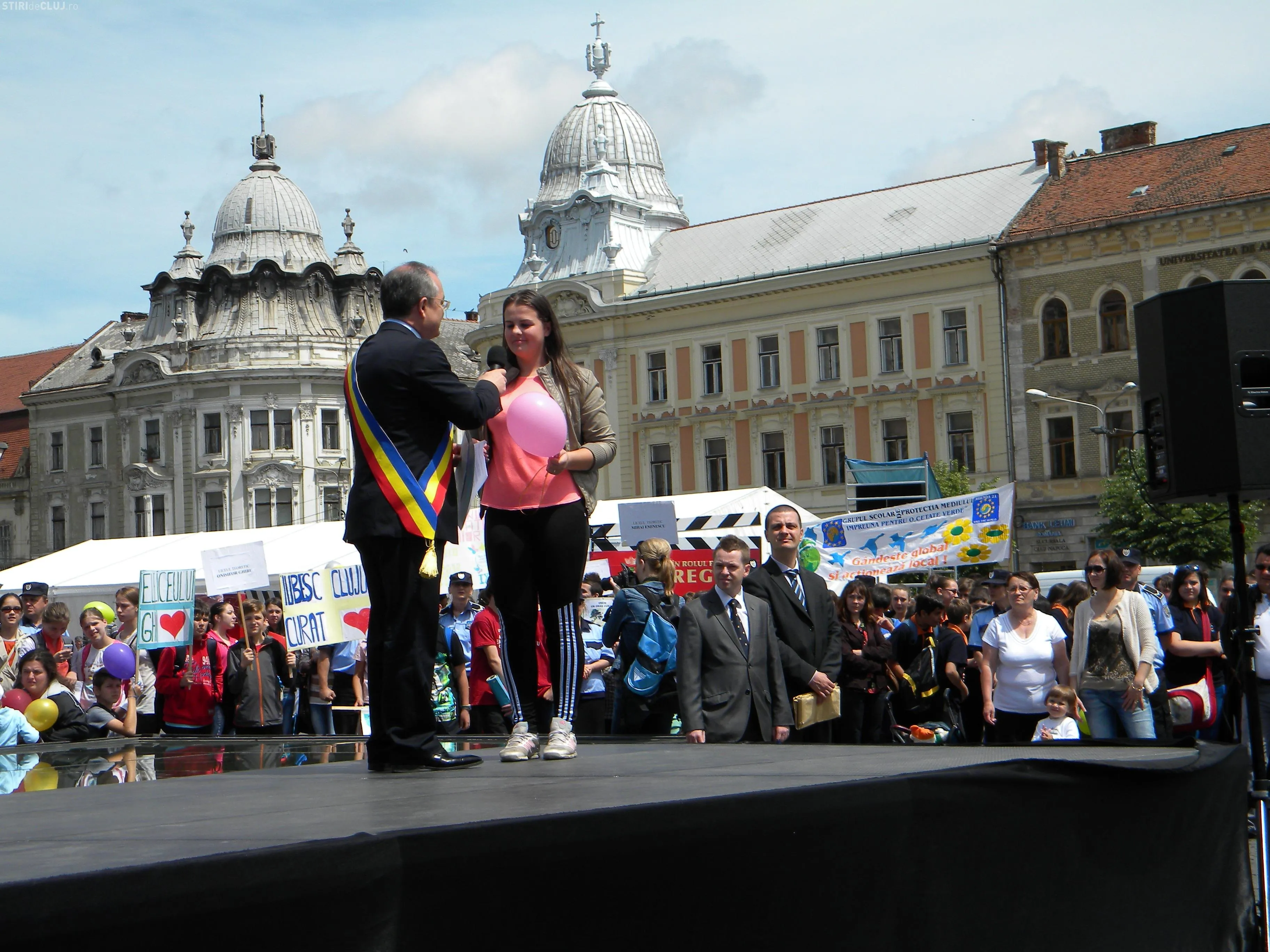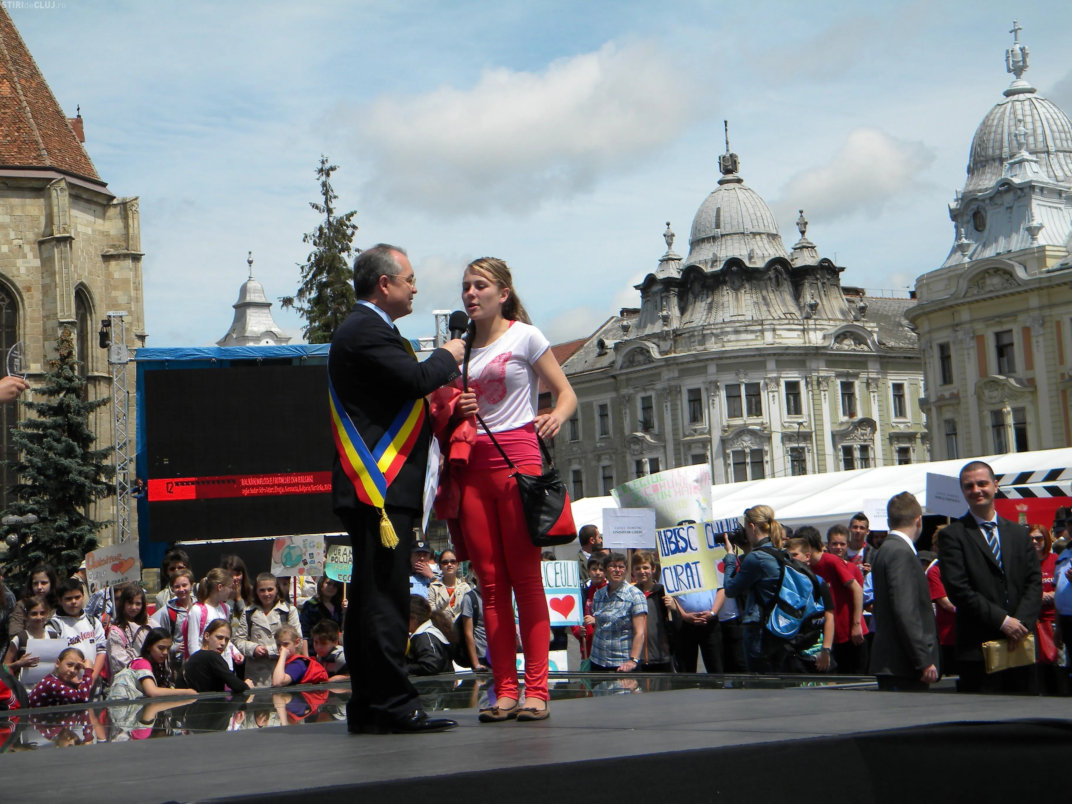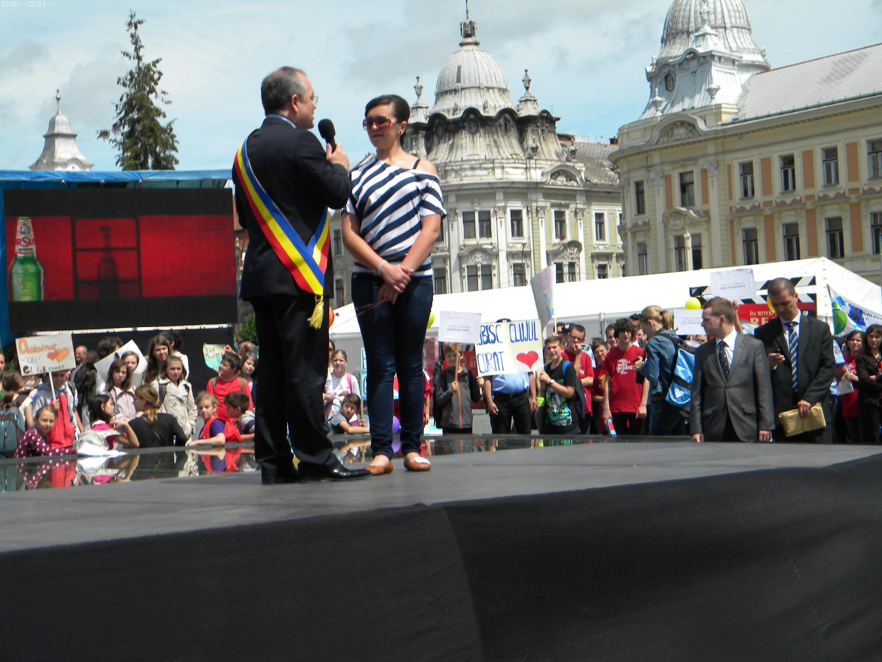 Elevii care s-au înscris în concursul ecologic Iubesc Clujul Curat 2013 au fost premiați de Emil Boc, vineri, 31 mai, în Piața Unirii.