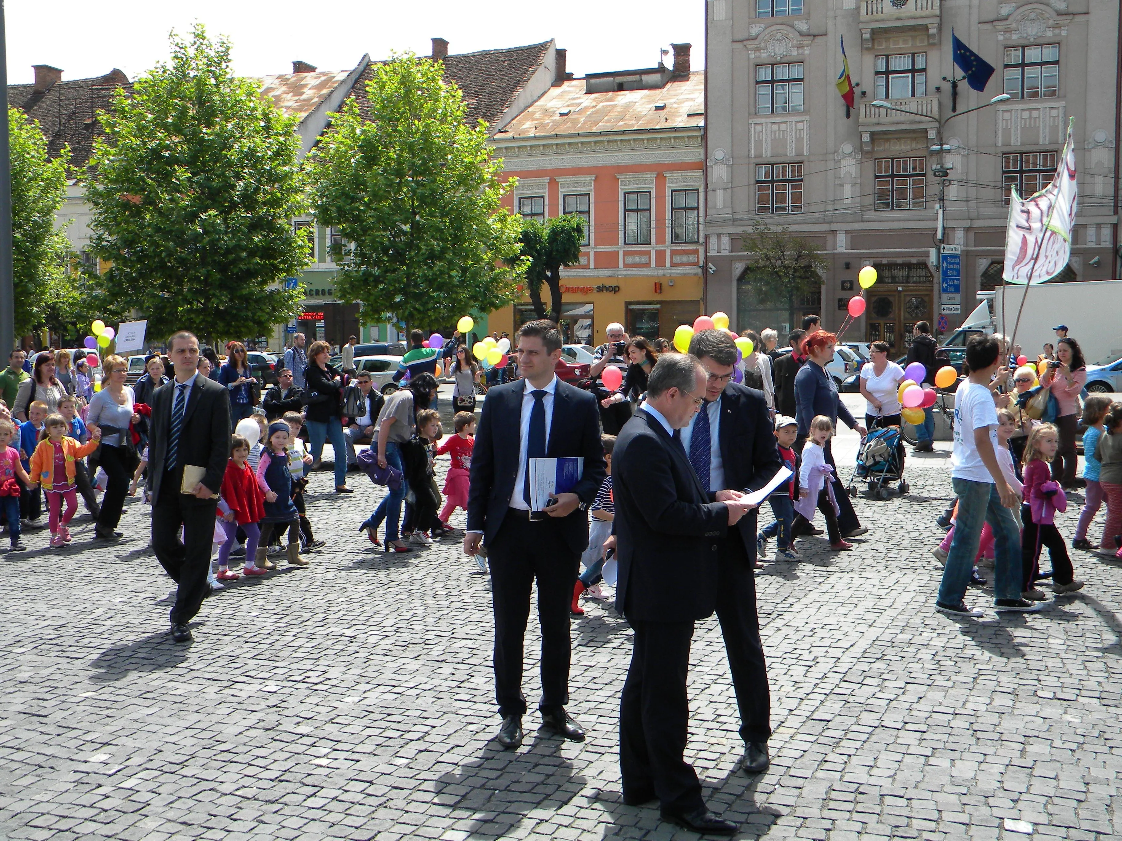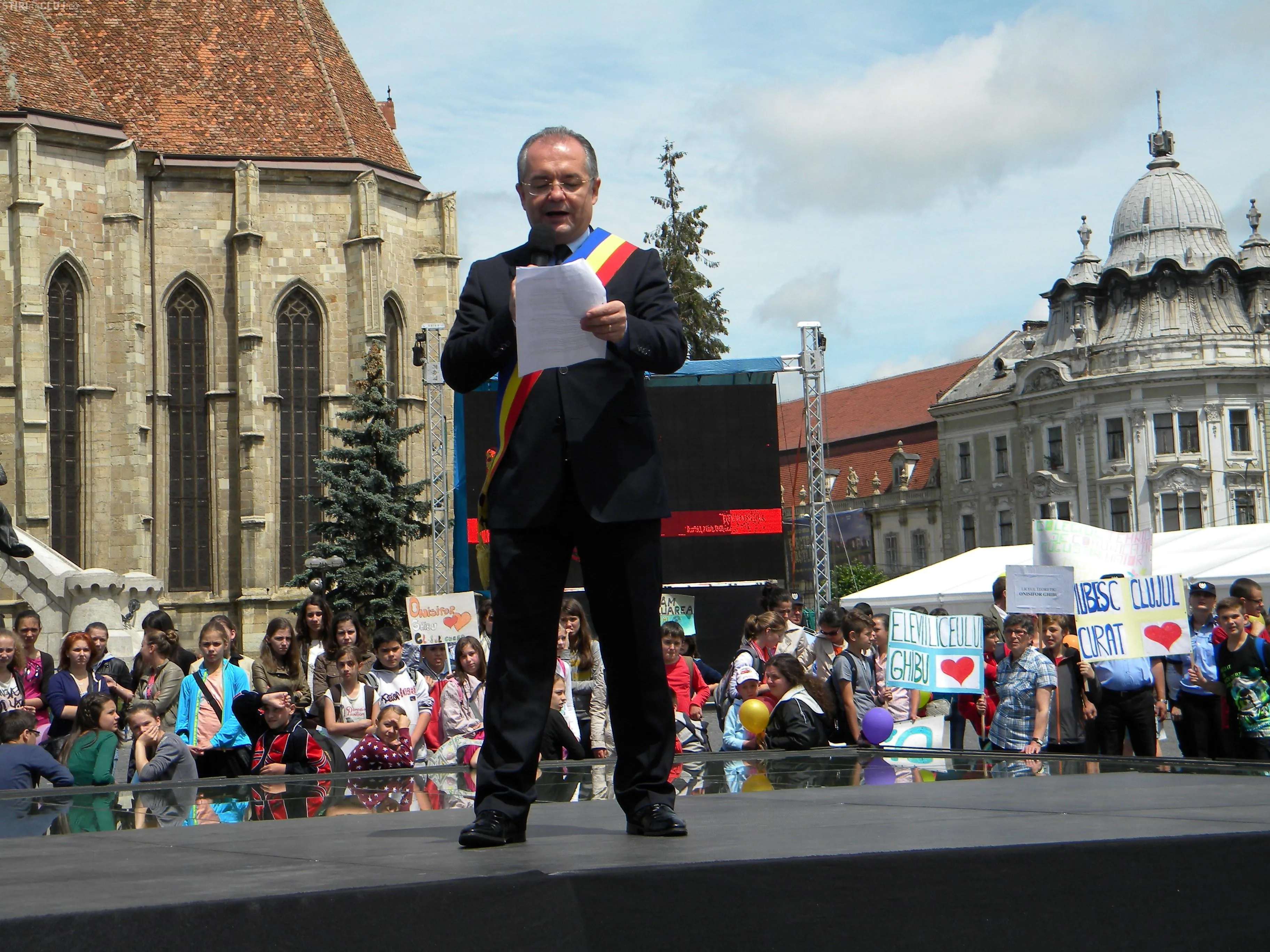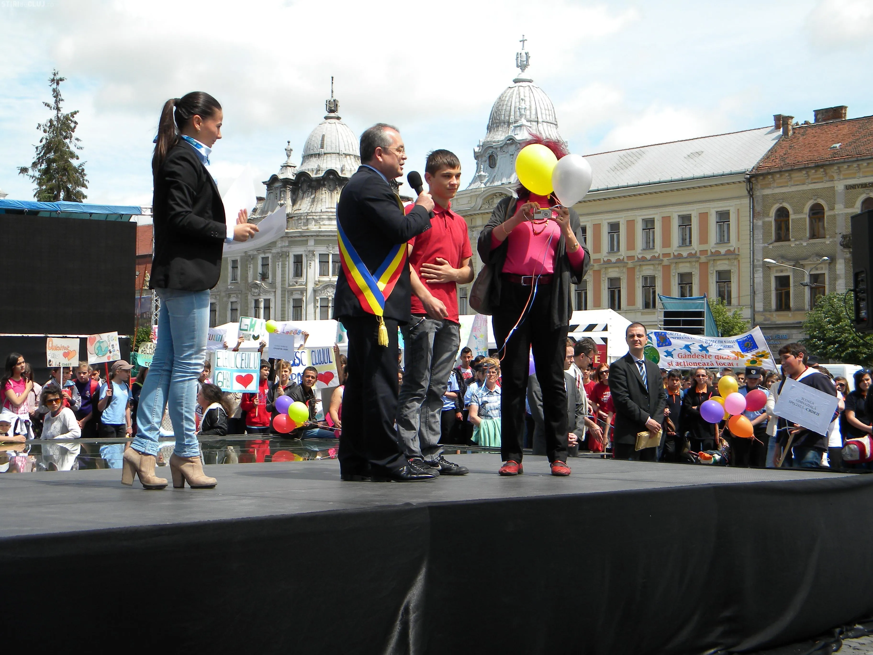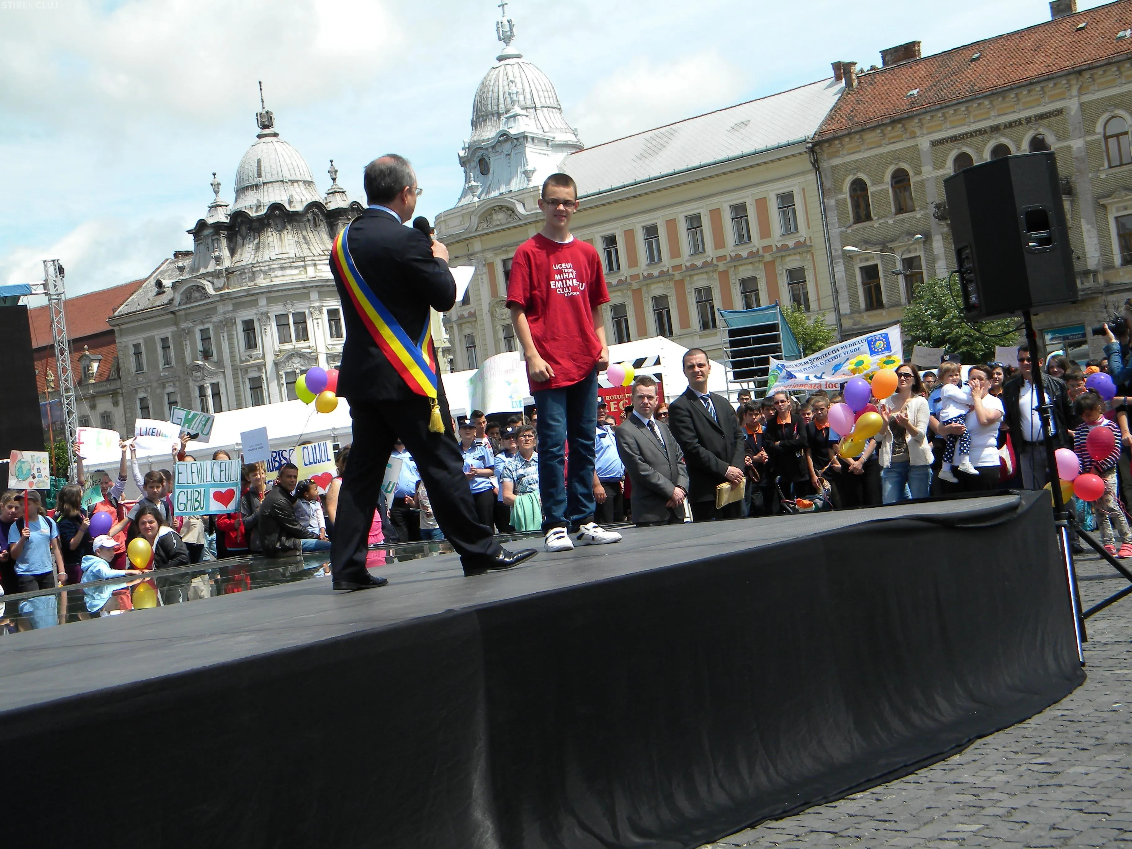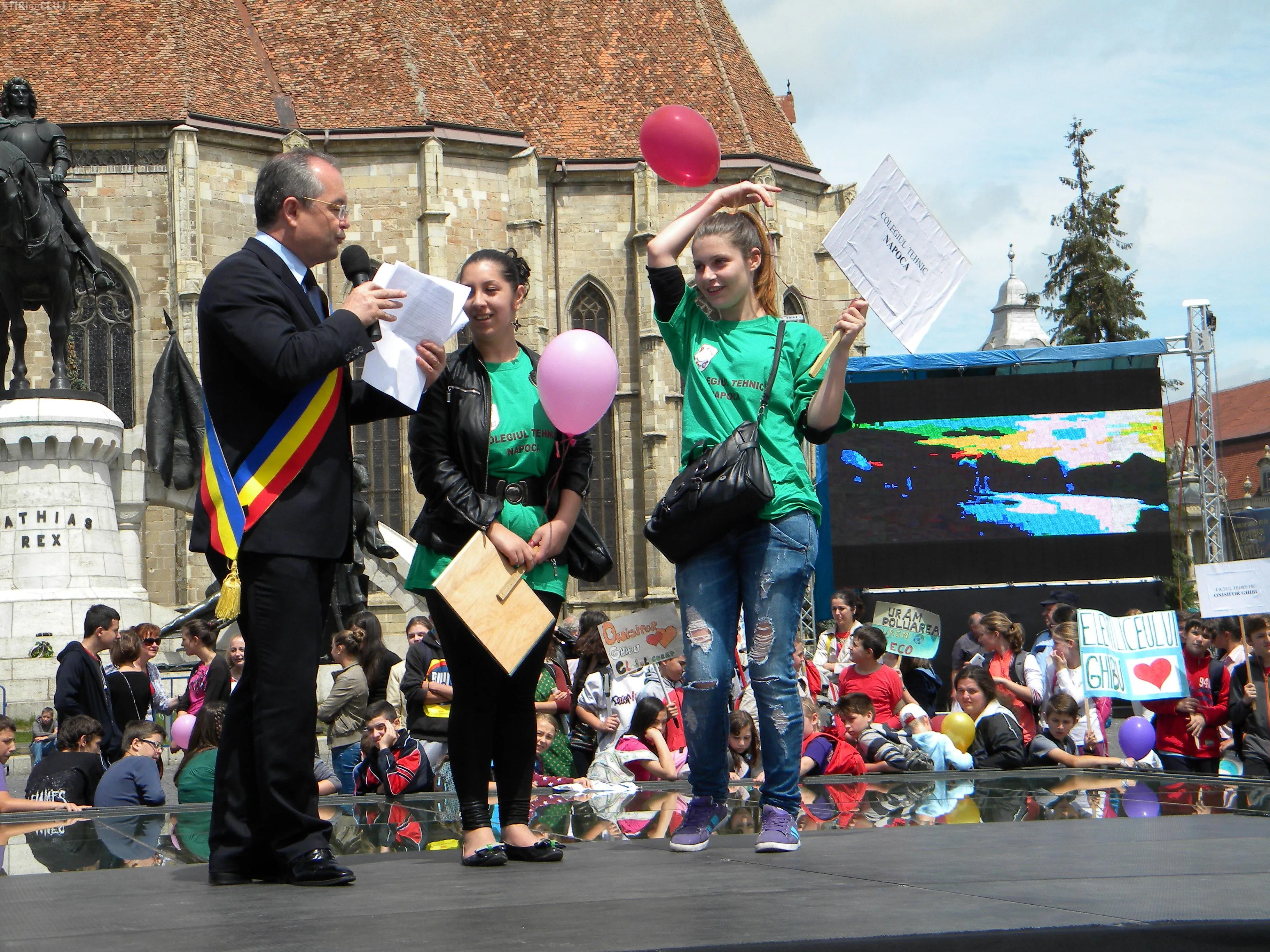 Elevii care s-au înscris în concursul ecologic Iubesc Clujul Curat 2013 au fost premiați de Emil Boc, vineri, 31 mai, în Piața Unirii.