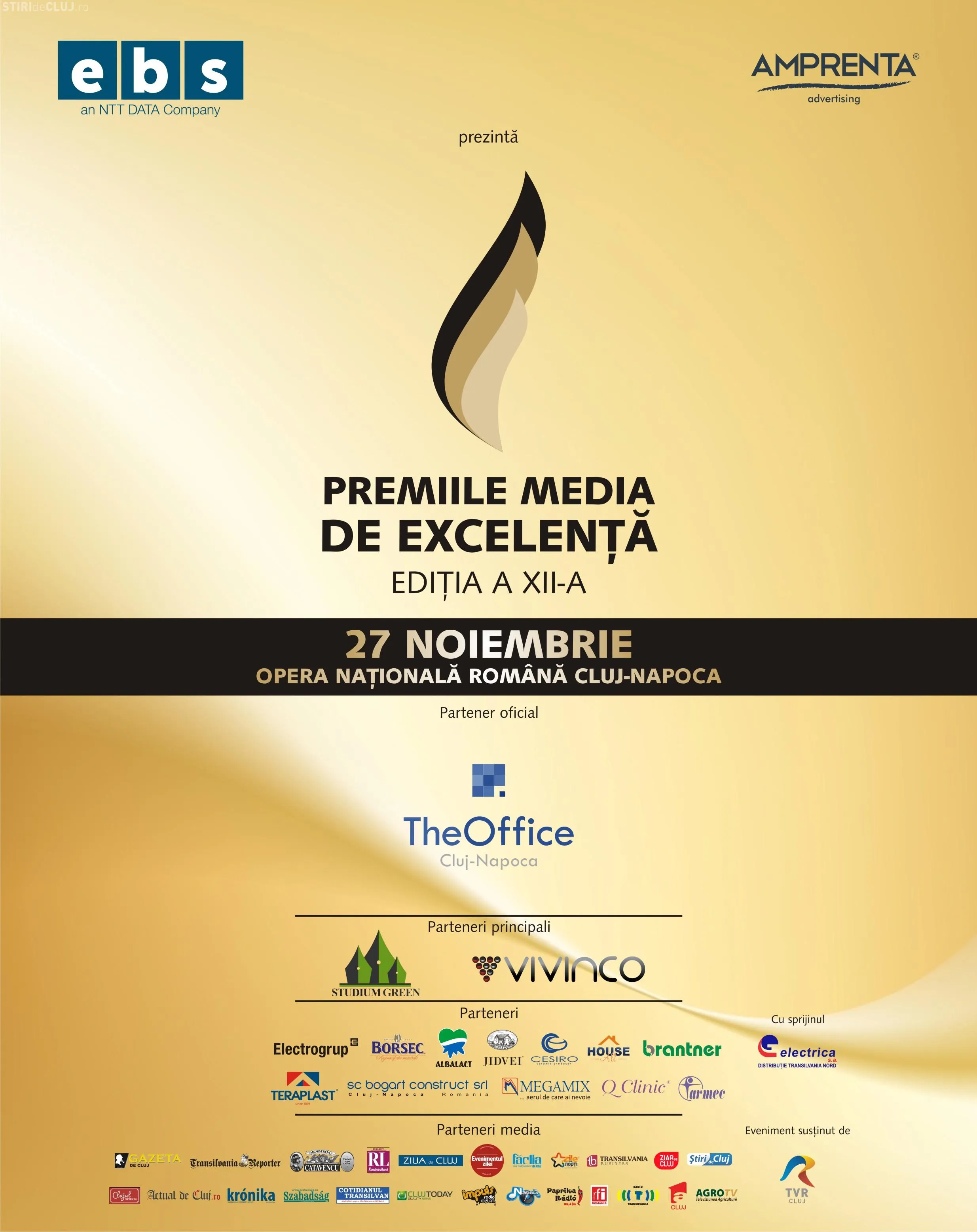 Cea de-a 12-a ediție a evenimentului Premiile Media de Excelență va avea loc în data de 27 noiembrie la Opera Națională Română din Cluj-Napoca.