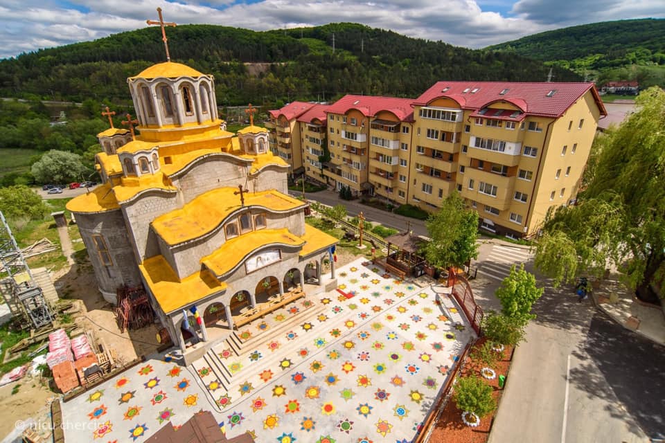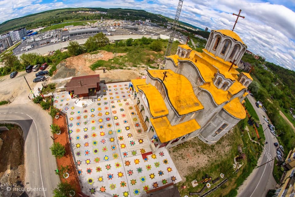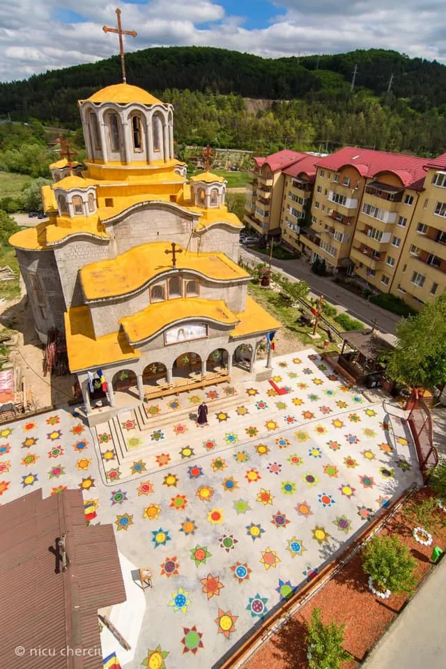 Preotul Marțiș din Florești și-a pictat curtea bisericii cu flori, pentru a respecta distanța socială - FOTO