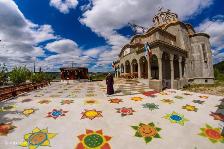 Preotul Ovidiu Marțiș din Florești, de la Parohia ”Sfântul Ioan Iacob Hozevitul”, a pictat toată curtea bisericii cu fețe zâmbitoare, amplasate la distanță unele de altele, pentru a-i ajuta pe credincioși să respecte distanța socială.