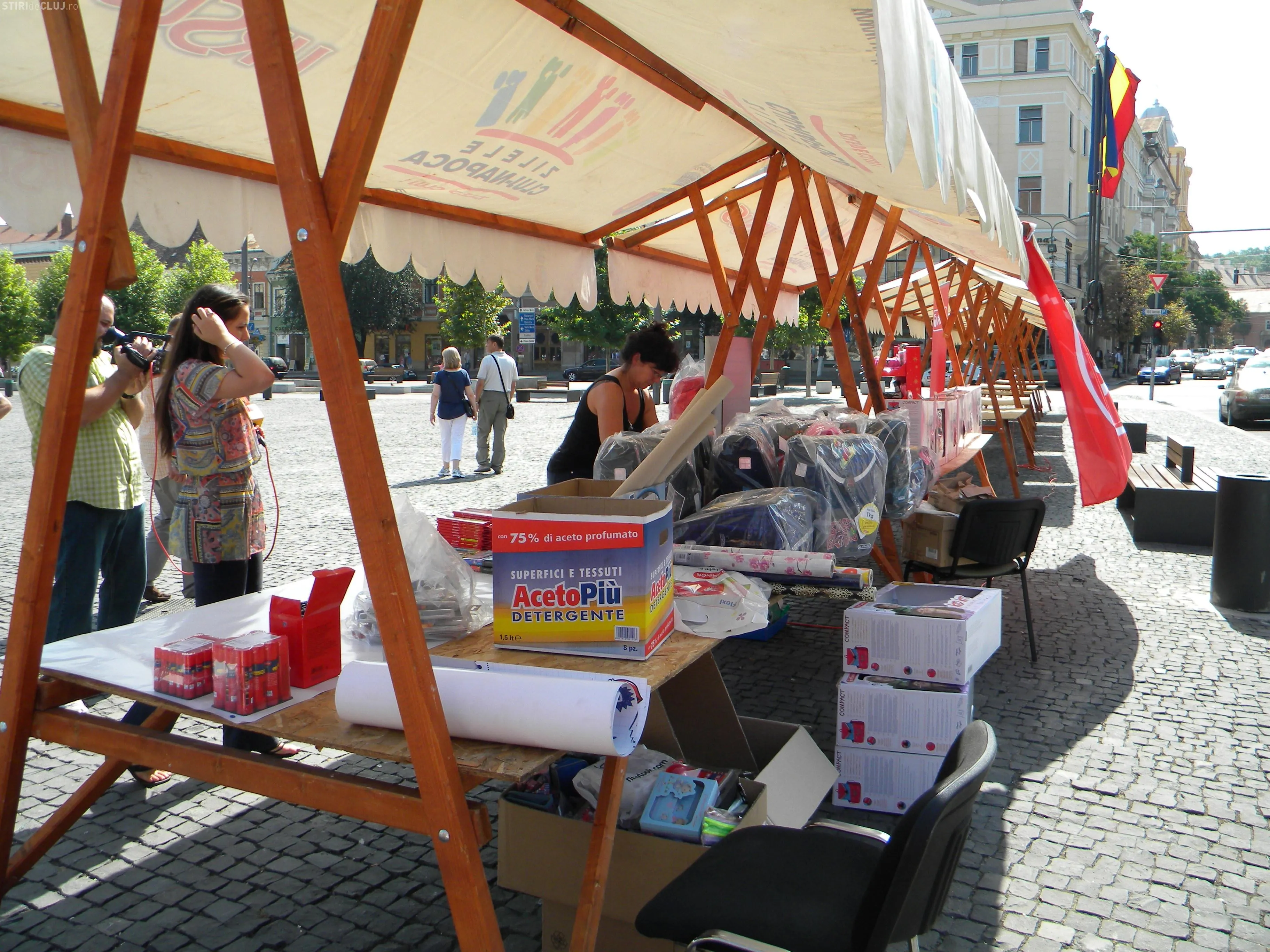 Târgul de rechizite din Piața Unirii nu se bucură de o prezență masivă a firmelor. La deschiderea de la ora 12.00 erau prezente numai două firme.