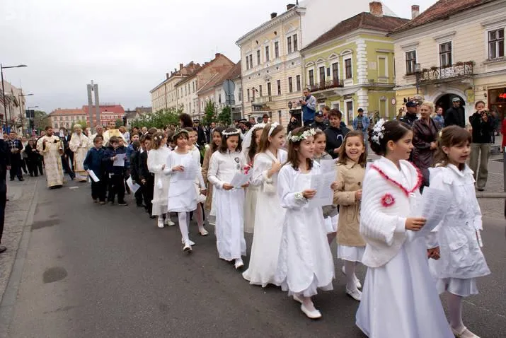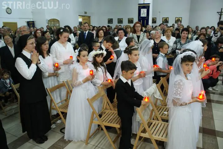 Un numar de 45 de copii, care invata in scolile din centrul Clujului, au facut Prima Sfanta Impartasanie, duminica, 13 mai, la capela "Sfantul Iosif" a Catedralei in constructie din Piata Cipariu.