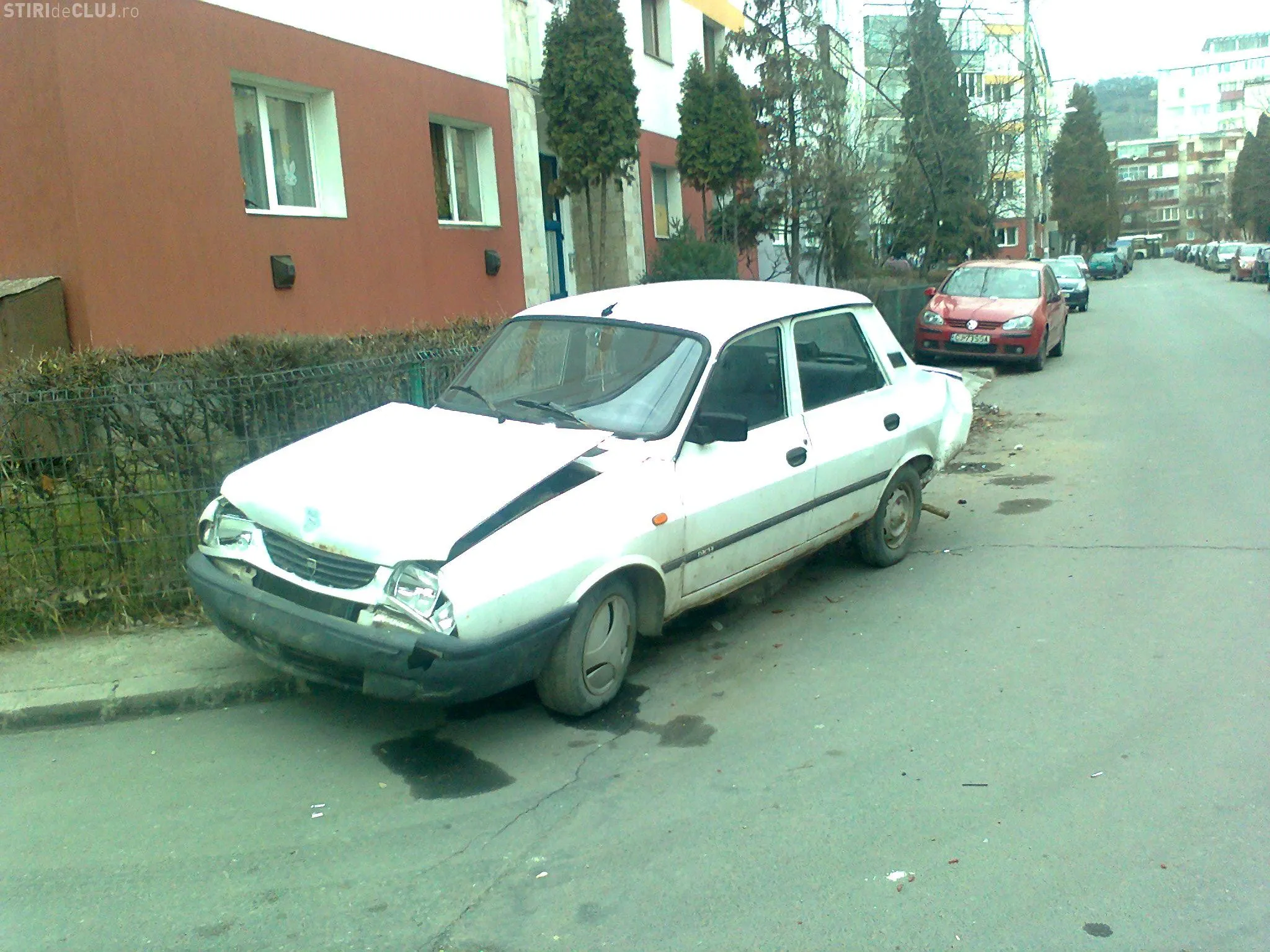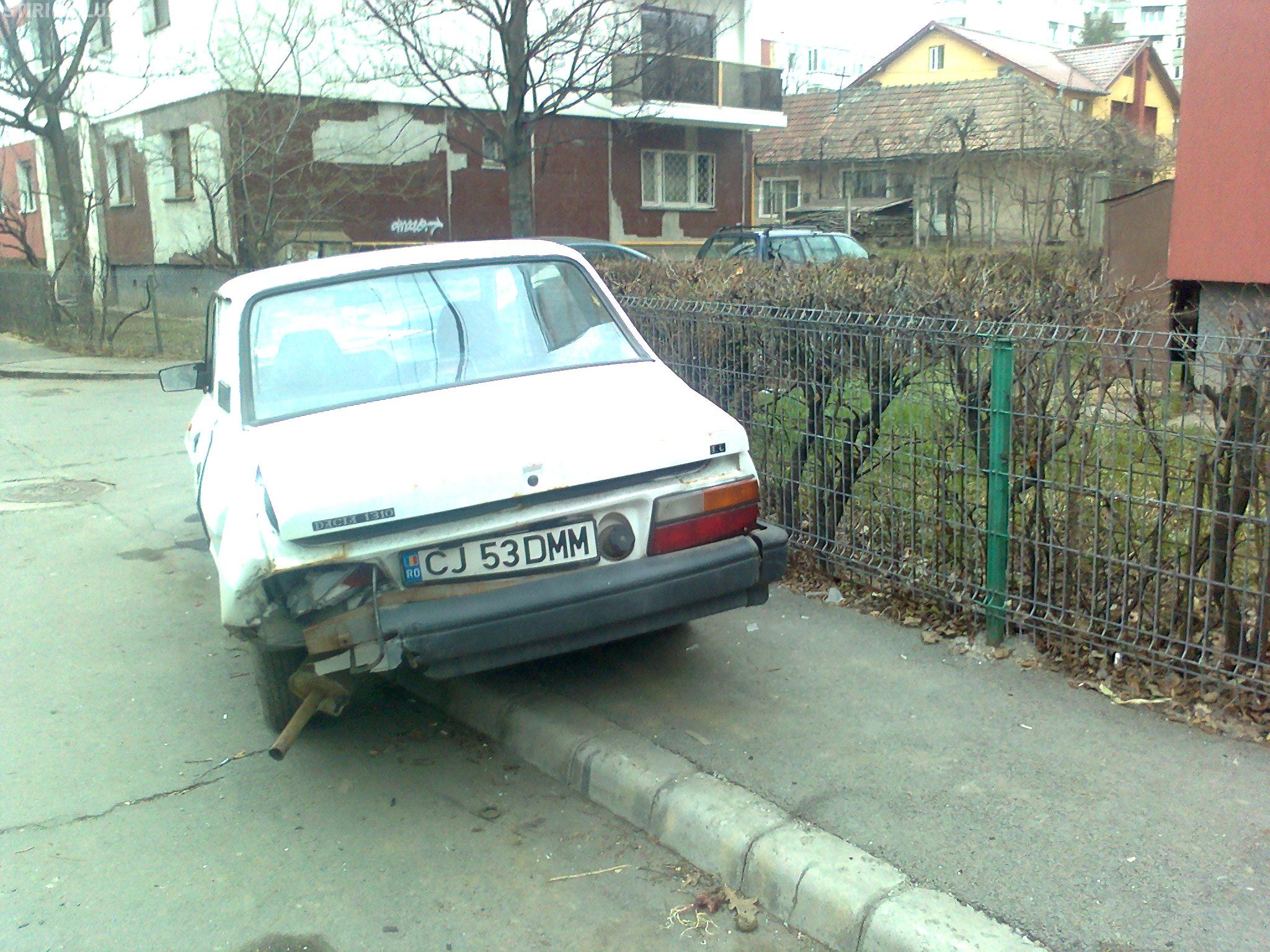 "Accidentul a avut loc in 30 martie si dupa cateva zile o masina a fost dusa, de catre proprietar, dar a doua, o Dacie alba, nu a fost revendicata de nimeni. A fost anuntata Primaria si urmeaza sa o ridice de pe Aleea Ciortea nr. 1", ne-a scris un cititor.