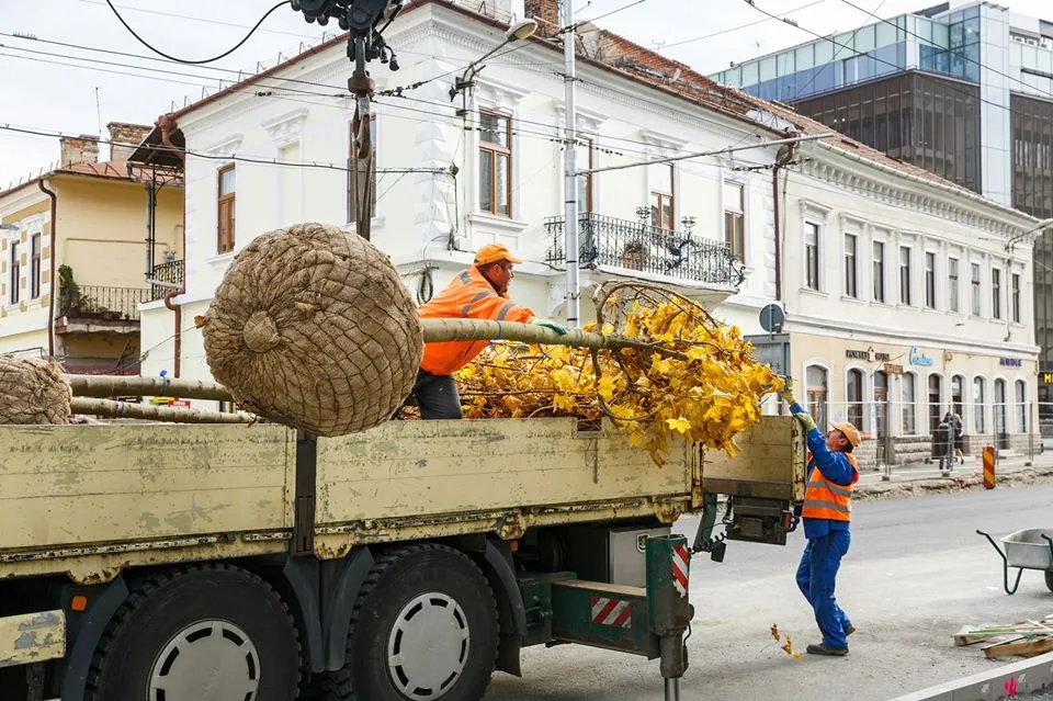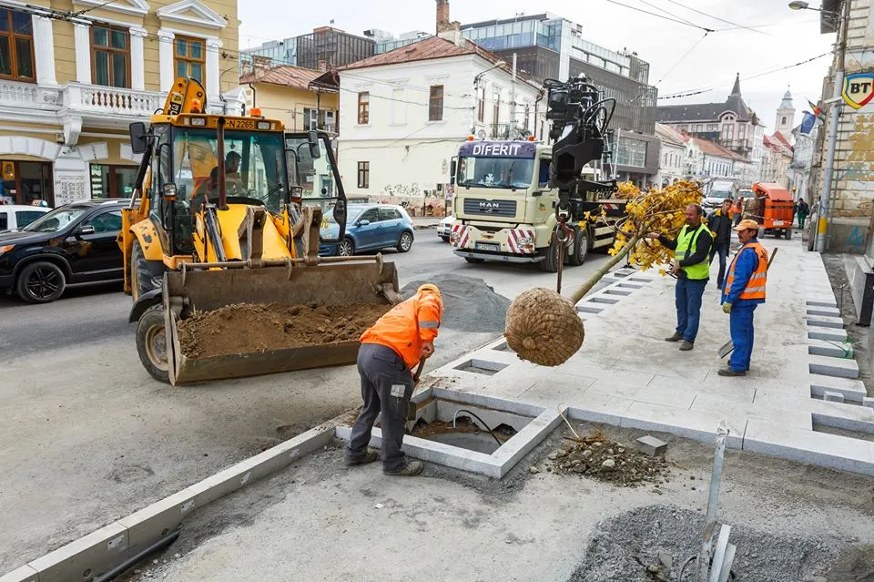 Primăria Cluj-Napoca a început plantarea celor 52 de copaci pe strada Regele Ferdinand. Câte lucrări au mai rămas de făcut