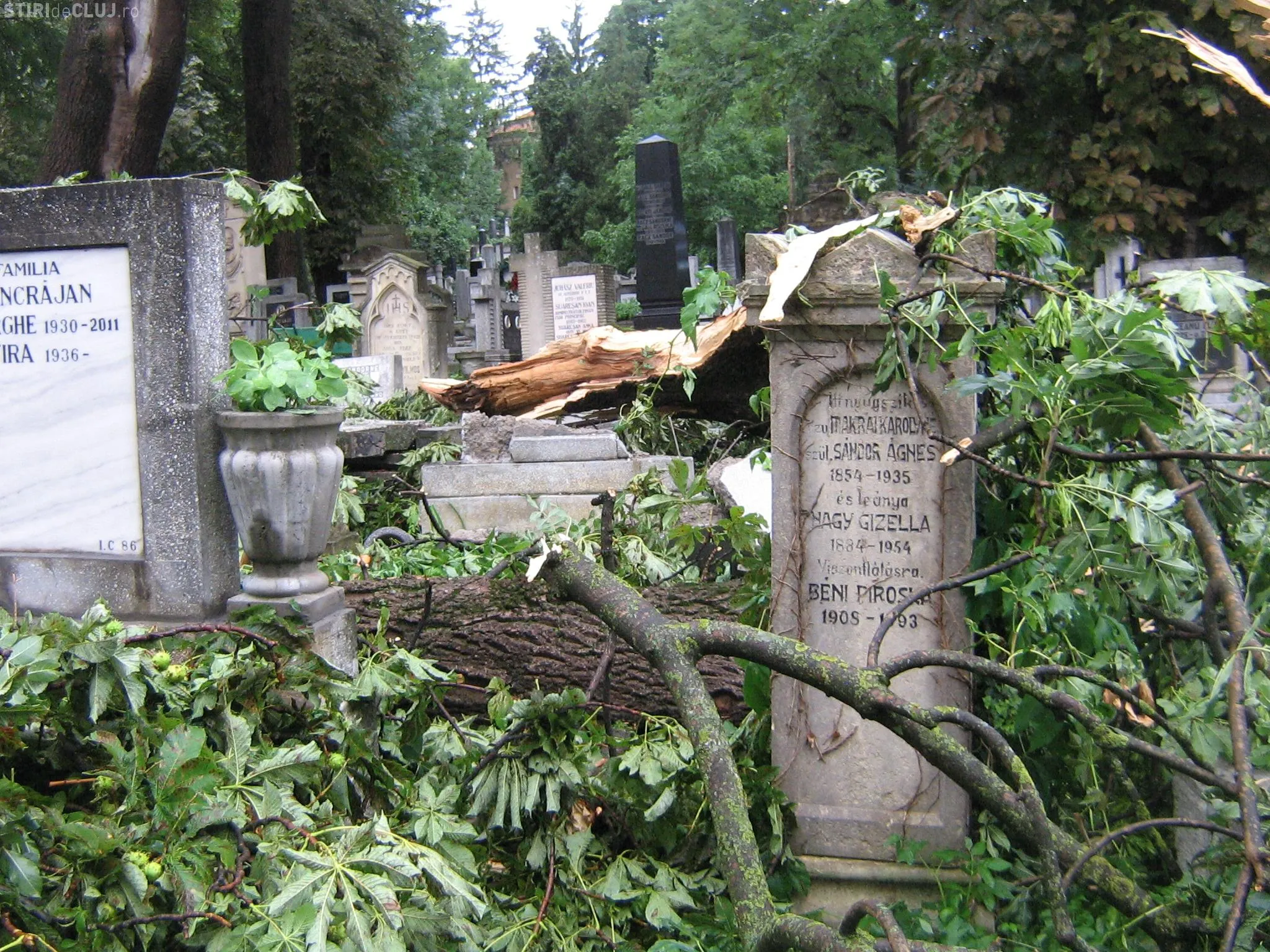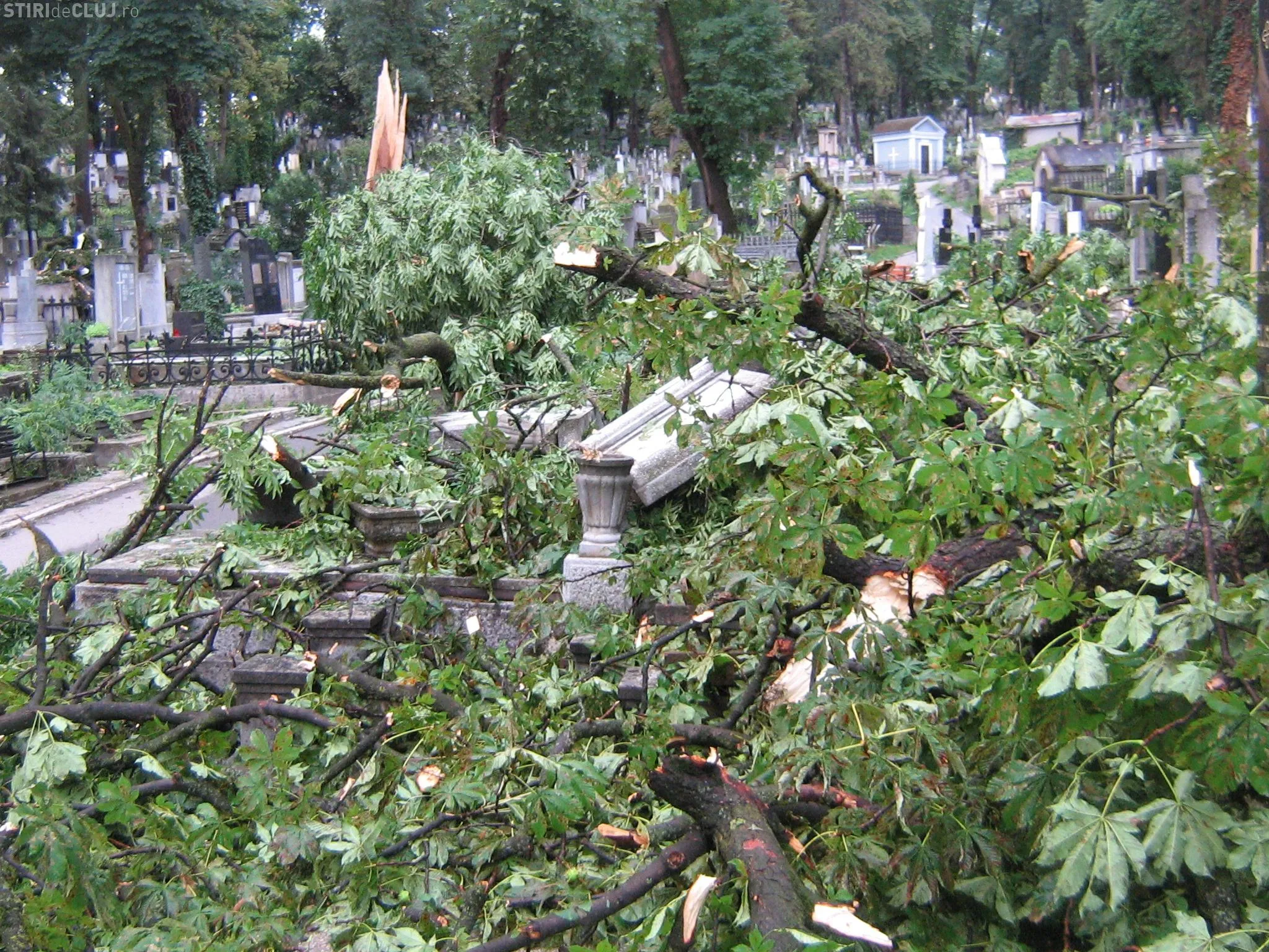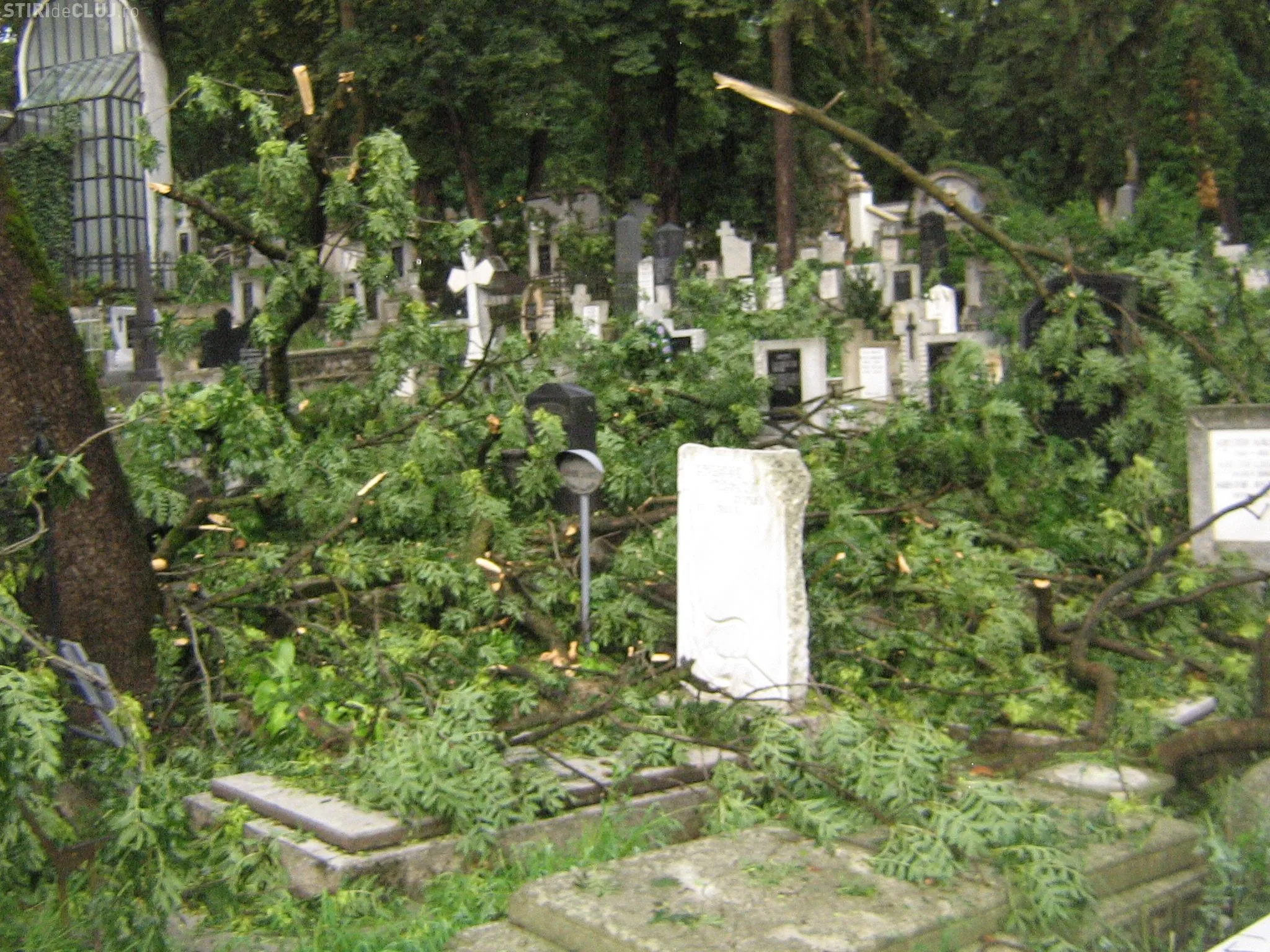 La sfarsitul lunii iulie 2011, Clujul a fost lovit de una dintre cele mai puternice furtuni din ultimii ani, iar vijelia a doborat zeci de arbori din parcurile orasului si din Cimitirul Central. "Fotografiile prezinta situatia din cimitir, din 21 iulie 2011, cand aleile au fost blocate si multe cruci daramate de copacii smulsi din radacina de furtuna. Aceasta situatie s-a intalnit si in parcuri, vietile clujenilor fiind puse in pericol. Lucrarile de toaletare facute acum in Parcul Central sunt necesare pentru ca acesti copaci sunt batrani. Coronamentul trebuie intinerit si specialistii consultati de cei care executa lucrarea au ales aceasta masura mai radicala, dupa unii, dar necesara", au precizat reprezentantii Primariei Cluj-Napoca.