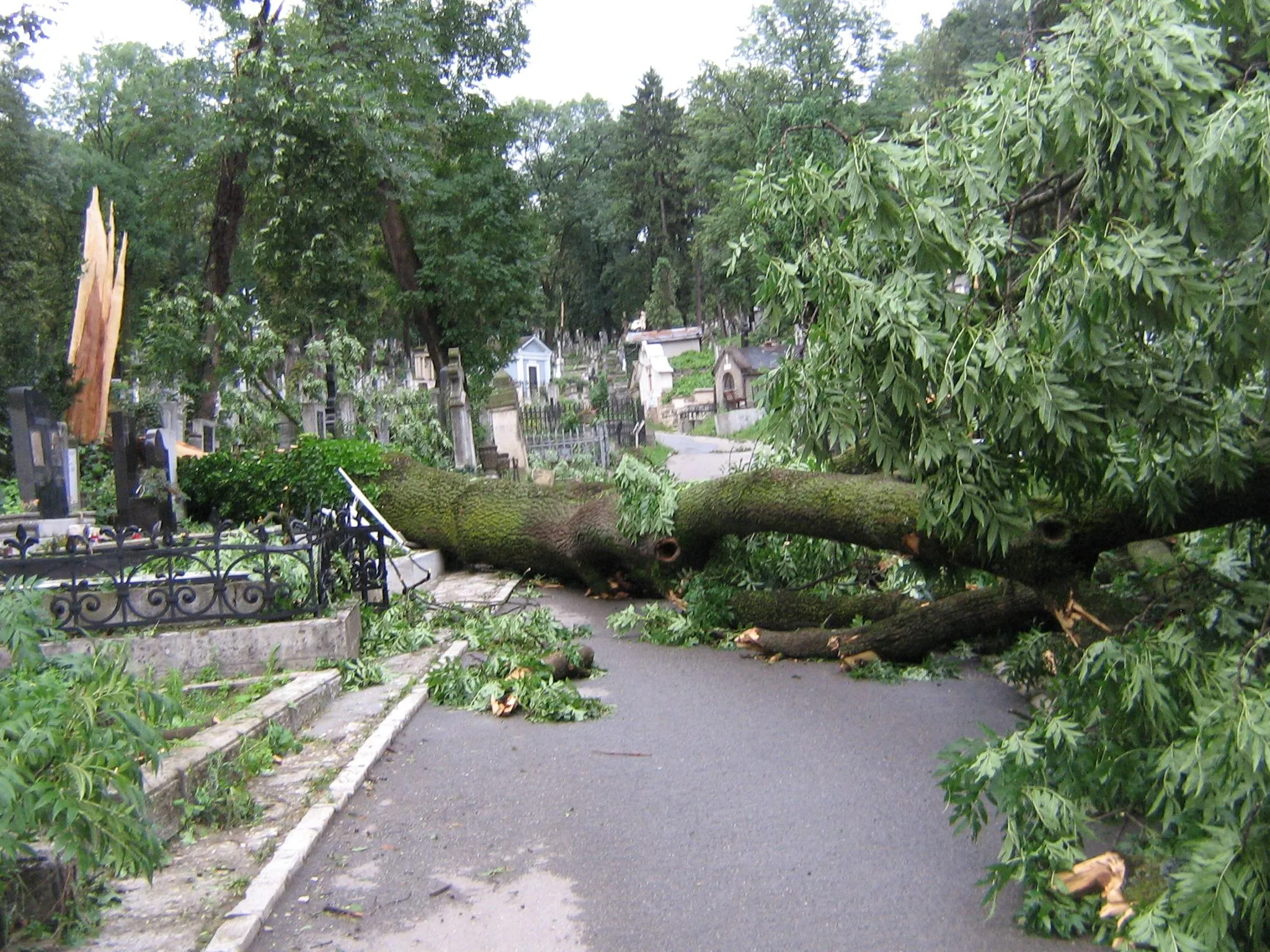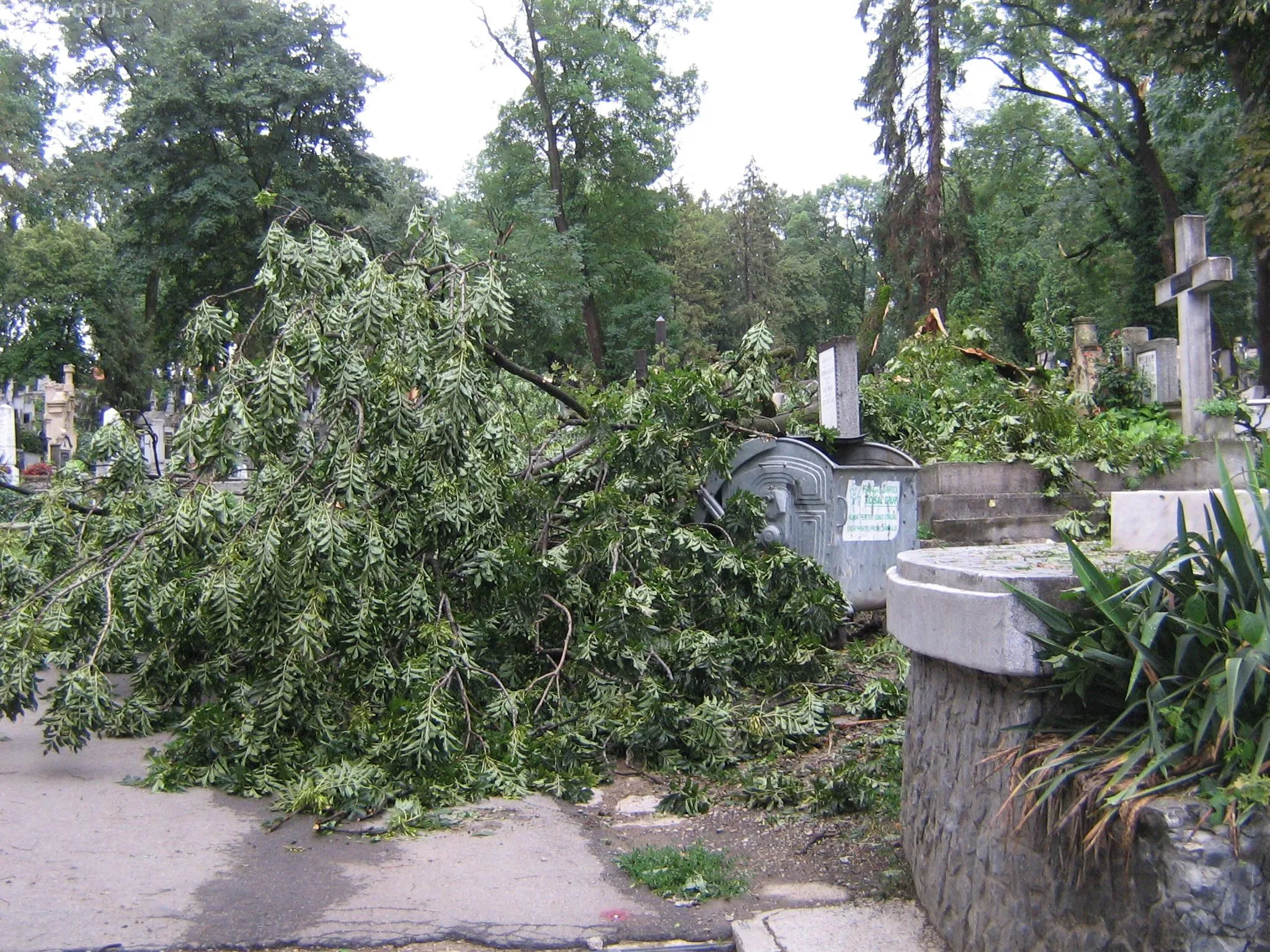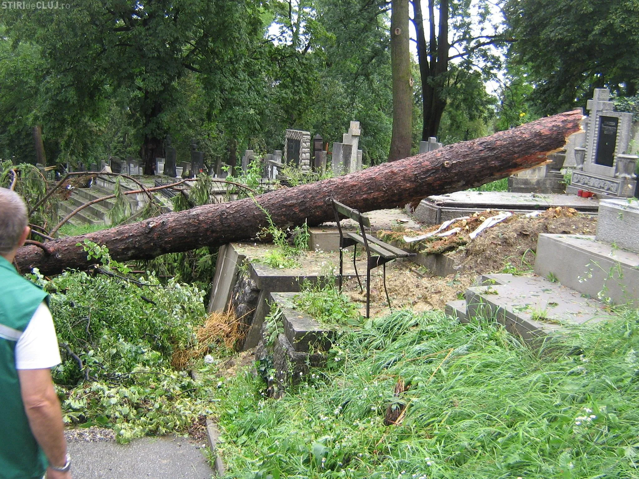 La sfarsitul lunii iulie 2011, Clujul a fost lovit de una dintre cele mai puternice furtuni din ultimii ani, iar vijelia a doborat zeci de arbori din parcurile orasului si din Cimitirul Central. "Fotografiile prezinta situatia din cimitir, din 21 iulie 2011, cand aleile au fost blocate si multe cruci daramate de copacii smulsi din radacina de furtuna. Aceasta situatie s-a intalnit si in parcuri, vietile clujenilor fiind puse in pericol. Lucrarile de toaletare facute acum in Parcul Central sunt necesare pentru ca acesti copaci sunt batrani. Coronamentul trebuie intinerit si specialistii consultati de cei care executa lucrarea au ales aceasta masura mai radicala, dupa unii, dar necesara", au precizat reprezentantii Primariei Cluj-Napoca.